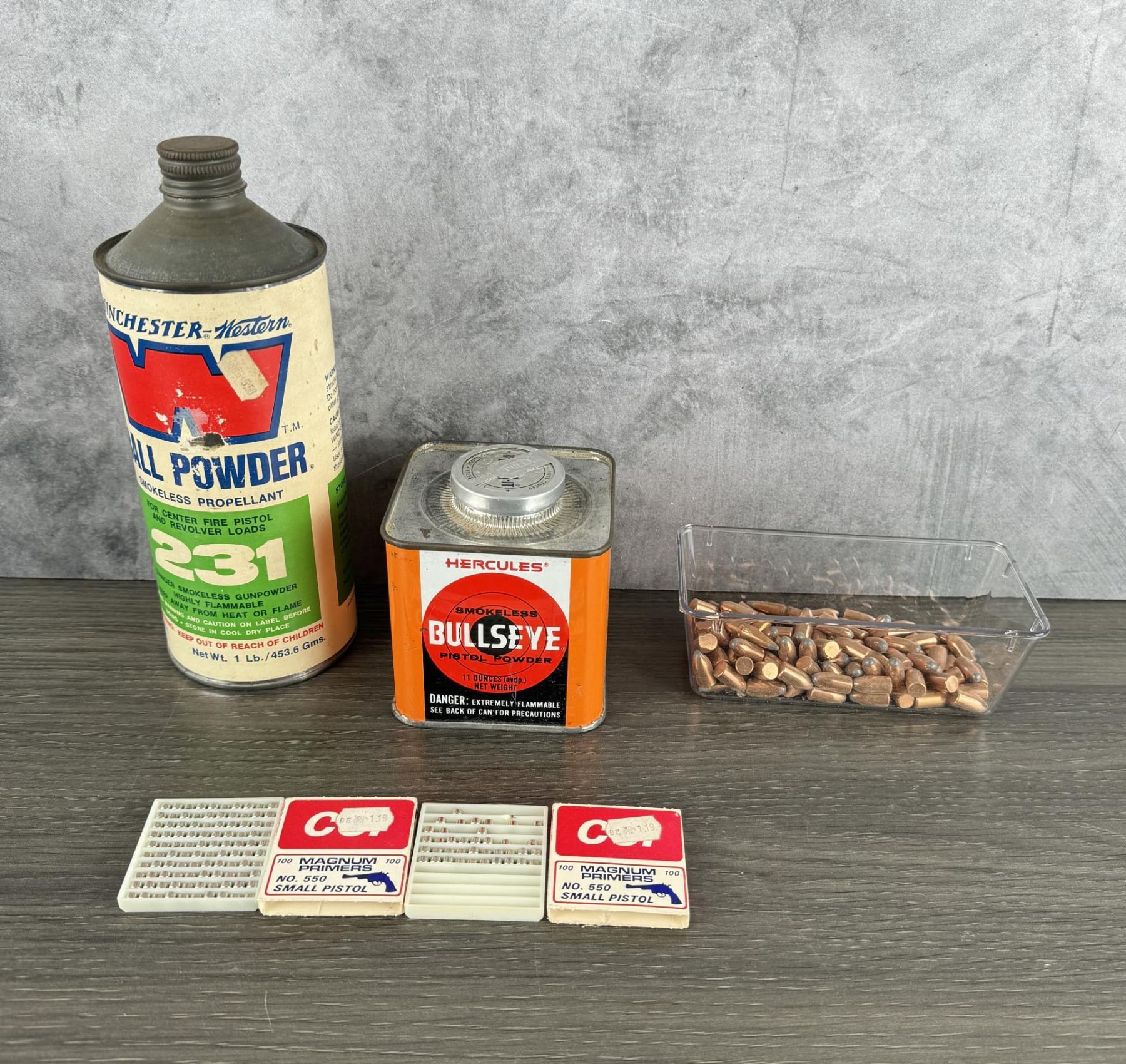 Includes powder, pistol primers, and various bullets. Shipping to Continental US only, no shipments or sales to Alaska or Hawaii.