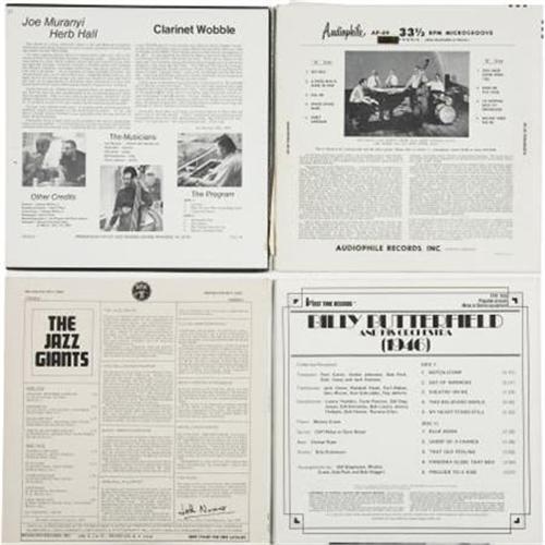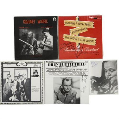<B>Group Of Four signed Jazz LPs Including Herbie Hall, Doc Evans, The Jazz Giants, Billy Butterfield.</B></I> Each signed by some or all of the album's players. Includes Herbie Hall and Joe Muranyi's <I>Clarinet Wobble</B></I> signed by both, <I>Reminiscing In Dixieland</B></I> signed by Doc Evans and Knocky Parker, <I>The Jazz Giants</B></I> signed by Herb Hall, and Billy Butterfield's <I>Instrumentals Never Before On Record</B></I> signed by Dick Cary and Butterfield with an 8 X 10" photograph signed by Butterfield.<BR><BR><b>Shipping:</b> Recordings (<a target="_blank" href="http://www.heritageauctions.com/common/shipping.php">view shipping information</a>)