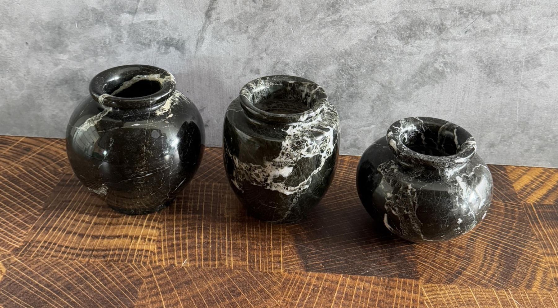 Three total. Largest is 3 7/8" tall by 4" in diameter.