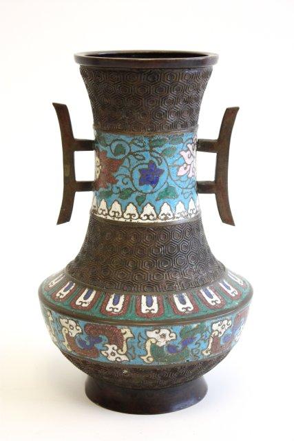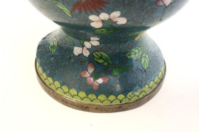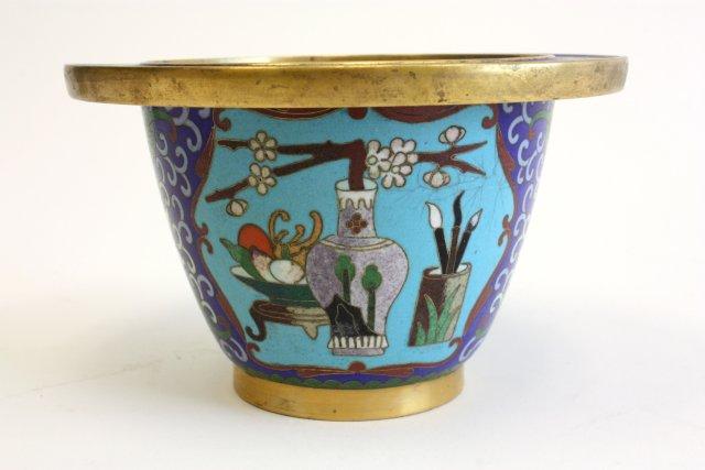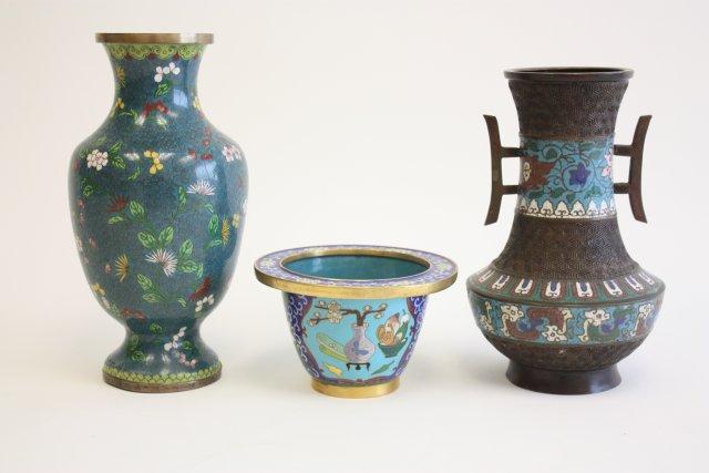 1-10.75" H cloisonne vase. 1-3.75" H x 6" Diam.  planter. 1-9.5" H champleve vase.