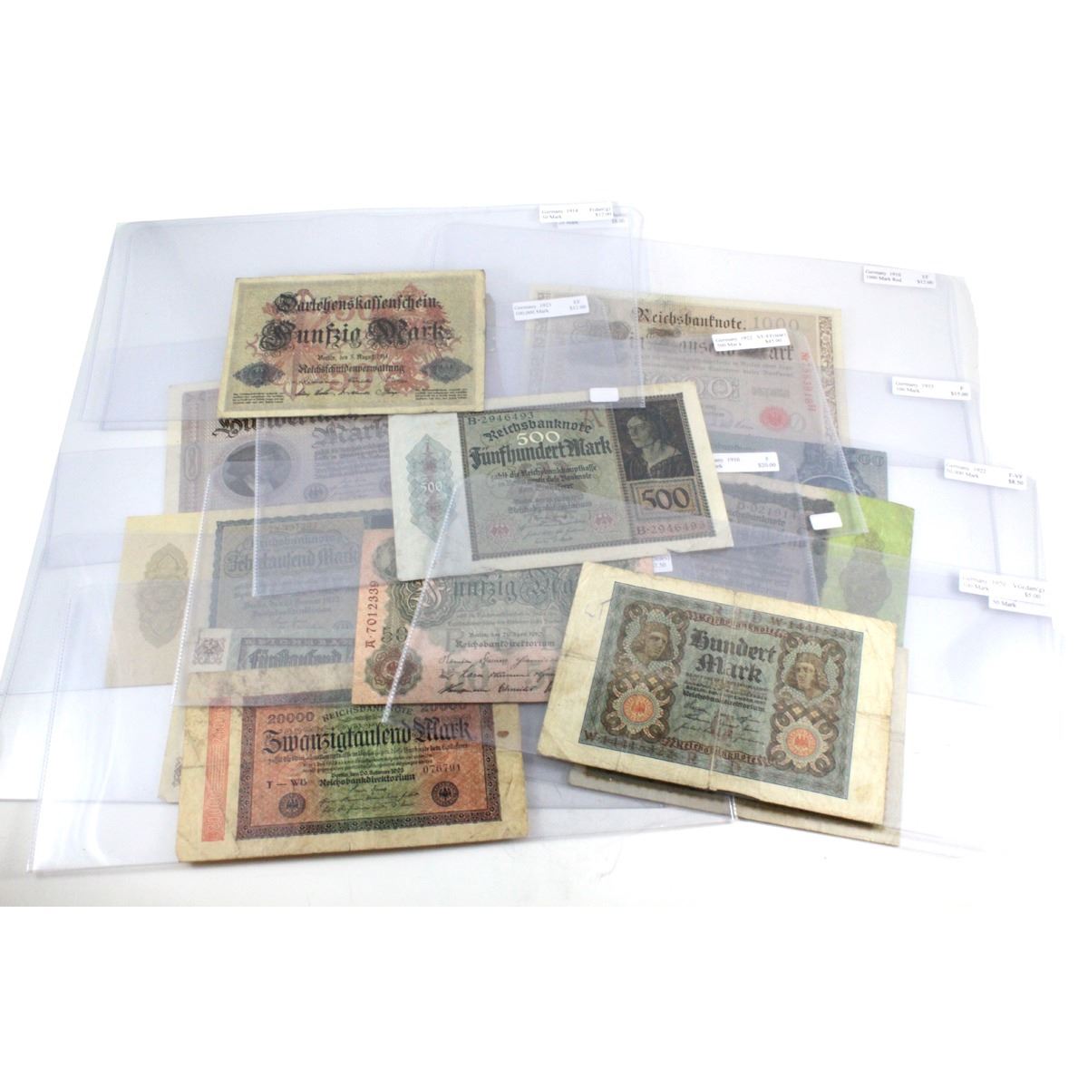 Group lot of 13 large sized German Banknotes dating from 1910 to 1935. Buyers Premium will be added on all items as per our terms of sale. We accept Paypal, Credit Card, E-Transfer Payments, Cheque or Money Orders (there is an additional 3% fee for using Paypal or Credit Card). All invoices will be emailed immediately following the auction, please contact us if you would like to pay by credit card or receive a new revised lower total for mailing in payment or sending an e-transfer (3% discount). All Items Are Sold "AS IS", no returns