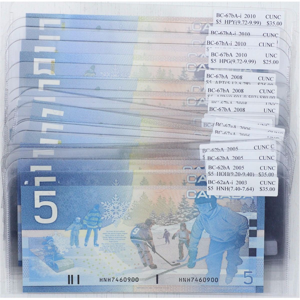 Group lot of 21 different insert replacement $5.00 notes in UNC or better condition. Years range from 2002 to 2006.