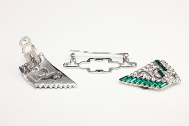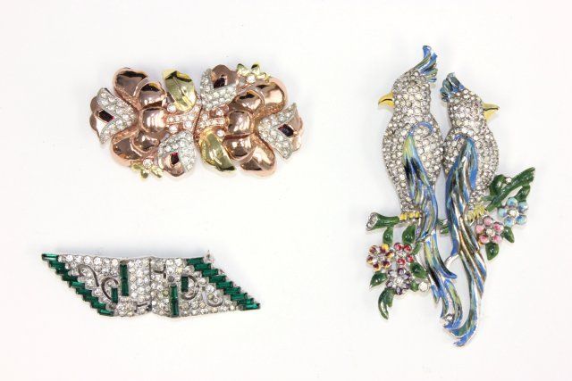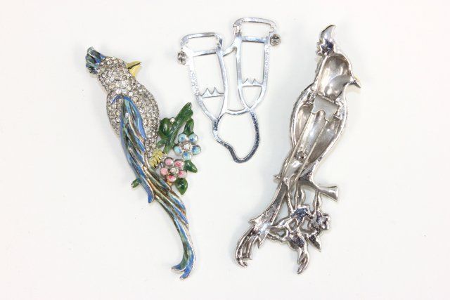 1- Tricolor with stones. 1- Double "Bird" with enamel. 1- Deco.