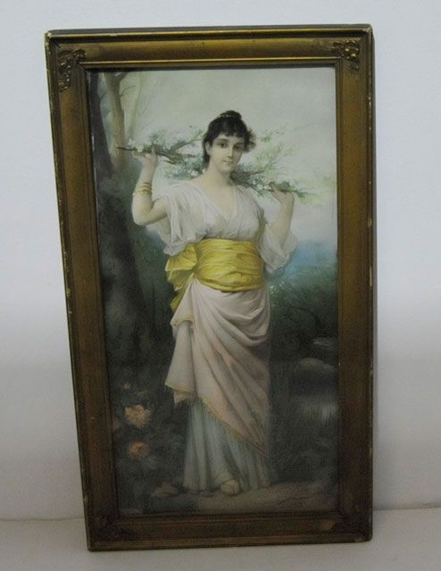 Including: 1- Pair "Seated Women" mounted in oak frames, ca. 1900, approx. 24" x 20". 1- "Goddess with Leaves Holding Flowers", approx. 18" x 10". Please read our terms of sale.