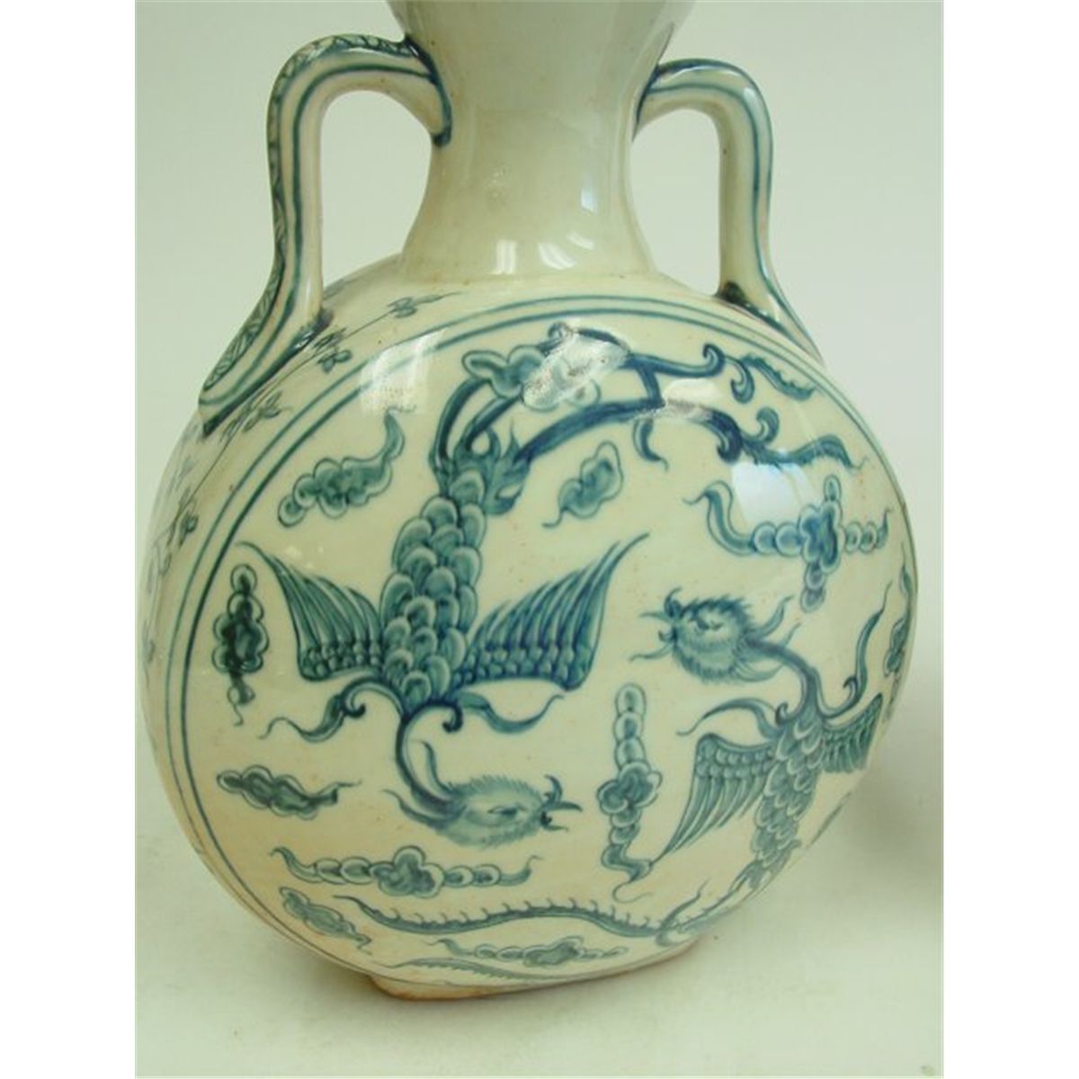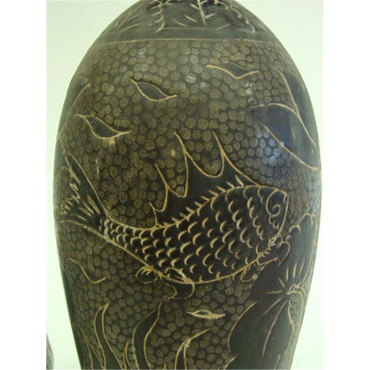 1- Blue & white. 1- Depicting "People on Horses". 1- "Fish" etchings. Largest approx. 16.5" H, smallest 14" H. Please read our terms of sale.