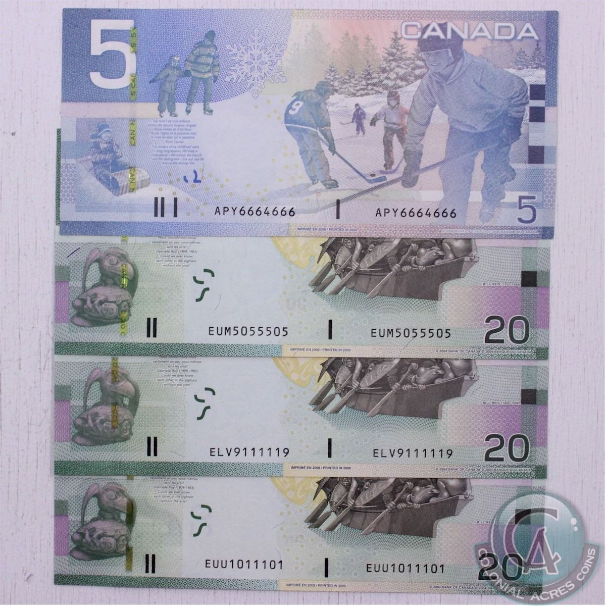 Group lot of 4 x 2 digit RADAR banknotes from the Journey series. You will receive 1x$5, 3x$20. 4pcs