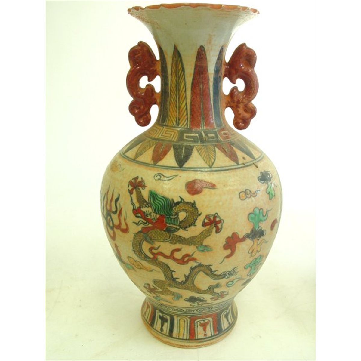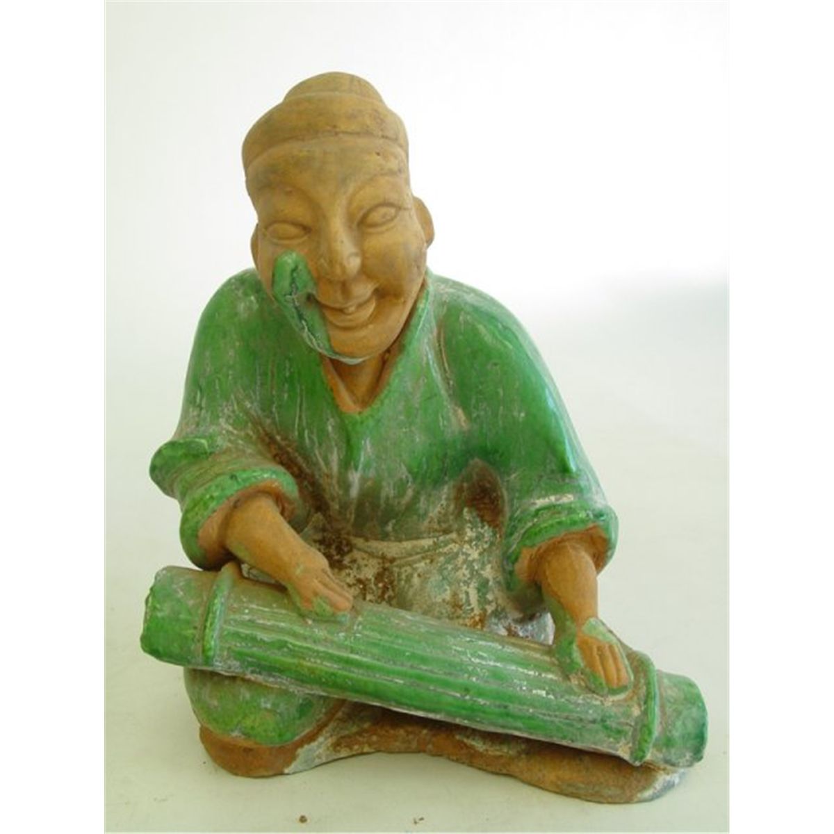 Including: 2- Terracotta figures. 3- Vases. 1- Plate. Largest approx. 15" H, smallest 9.5" H. Please read our terms of sale.