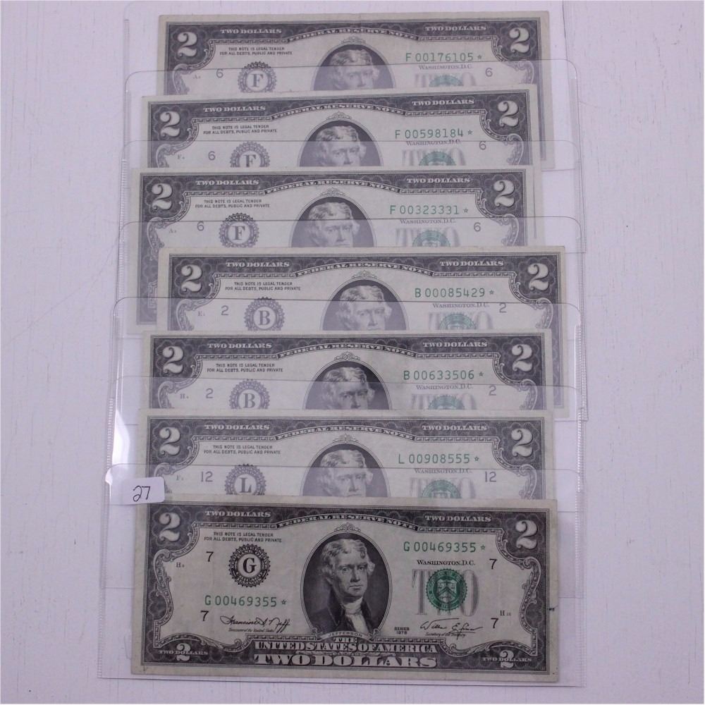 Group lot of 7 x 1976 Replacement $2.00 notes from the United States. 7 Star notes in total!