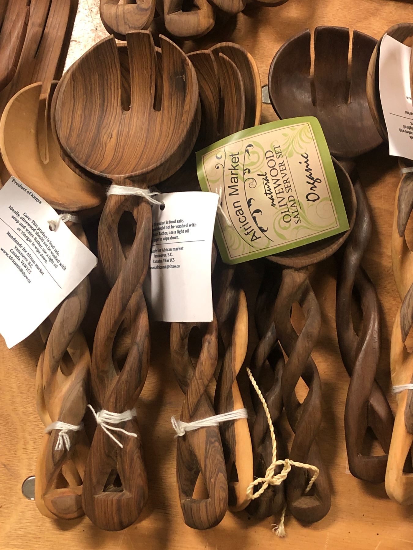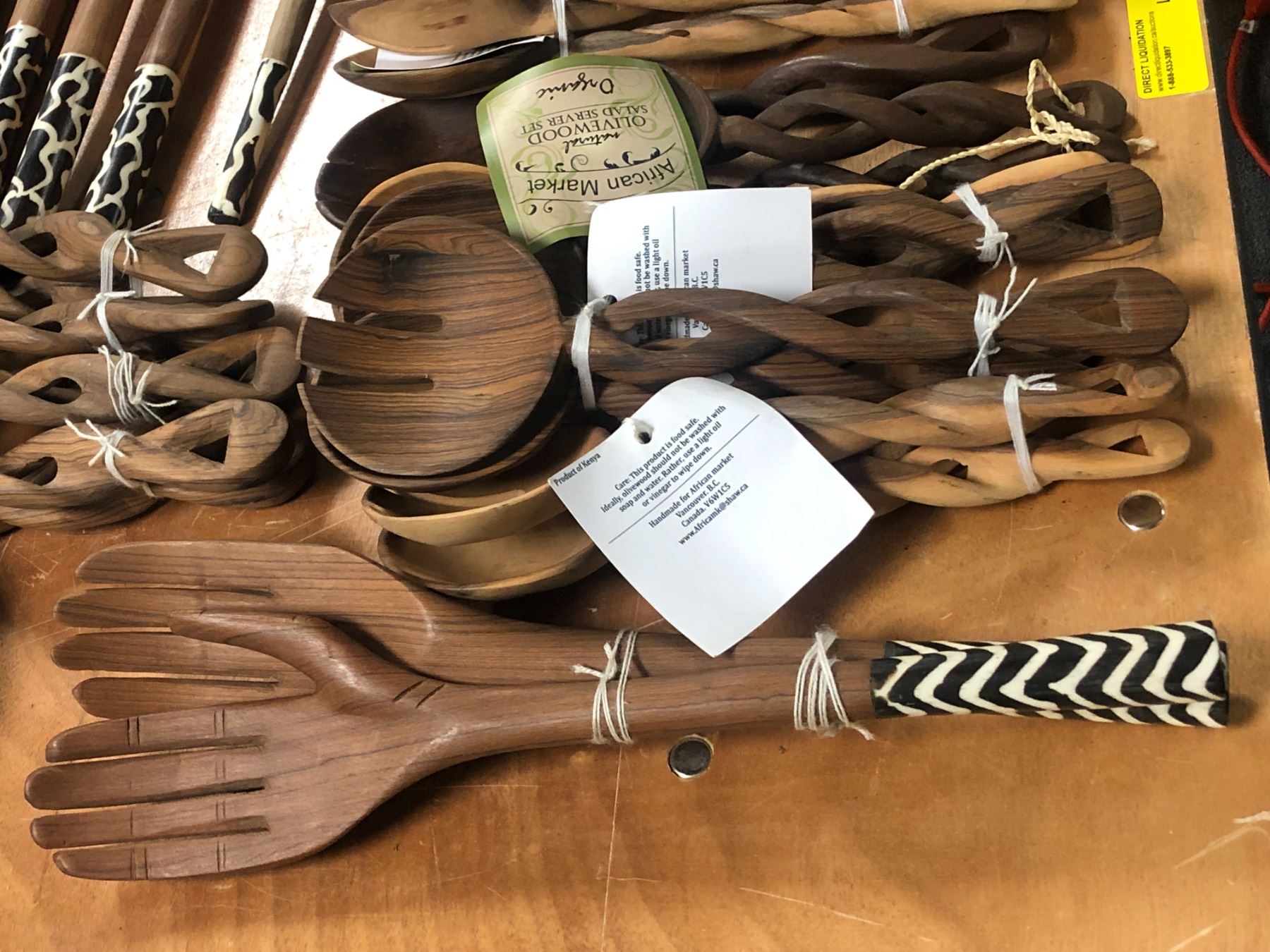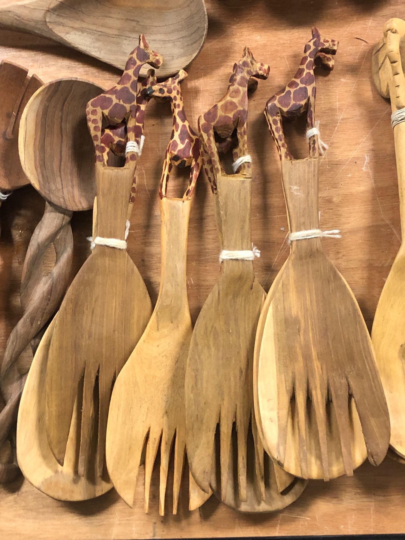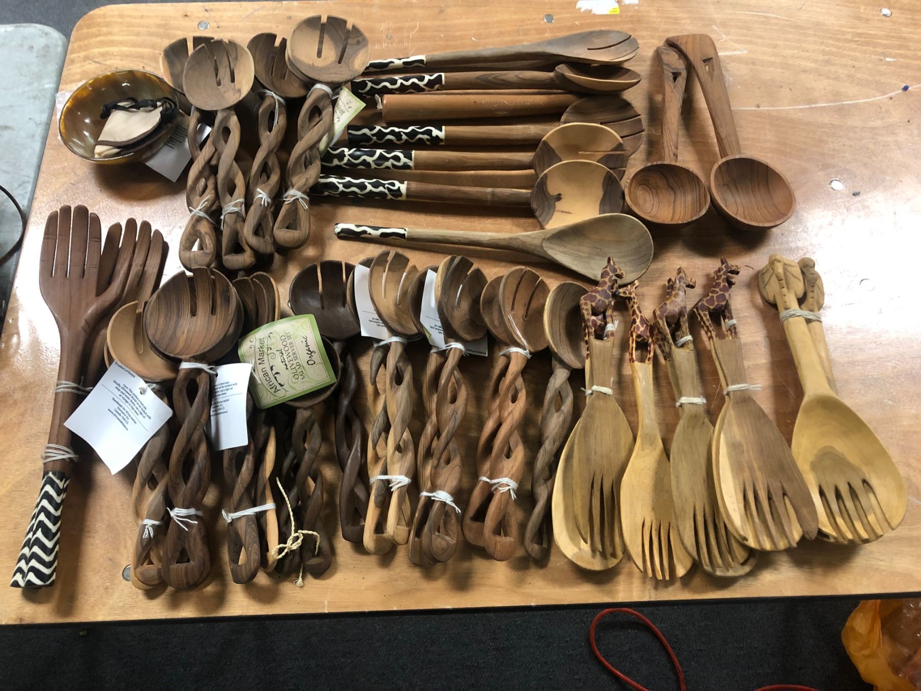 Group lot of African olive wood salad server sets "spoon & forks" (approx 43 pcs)