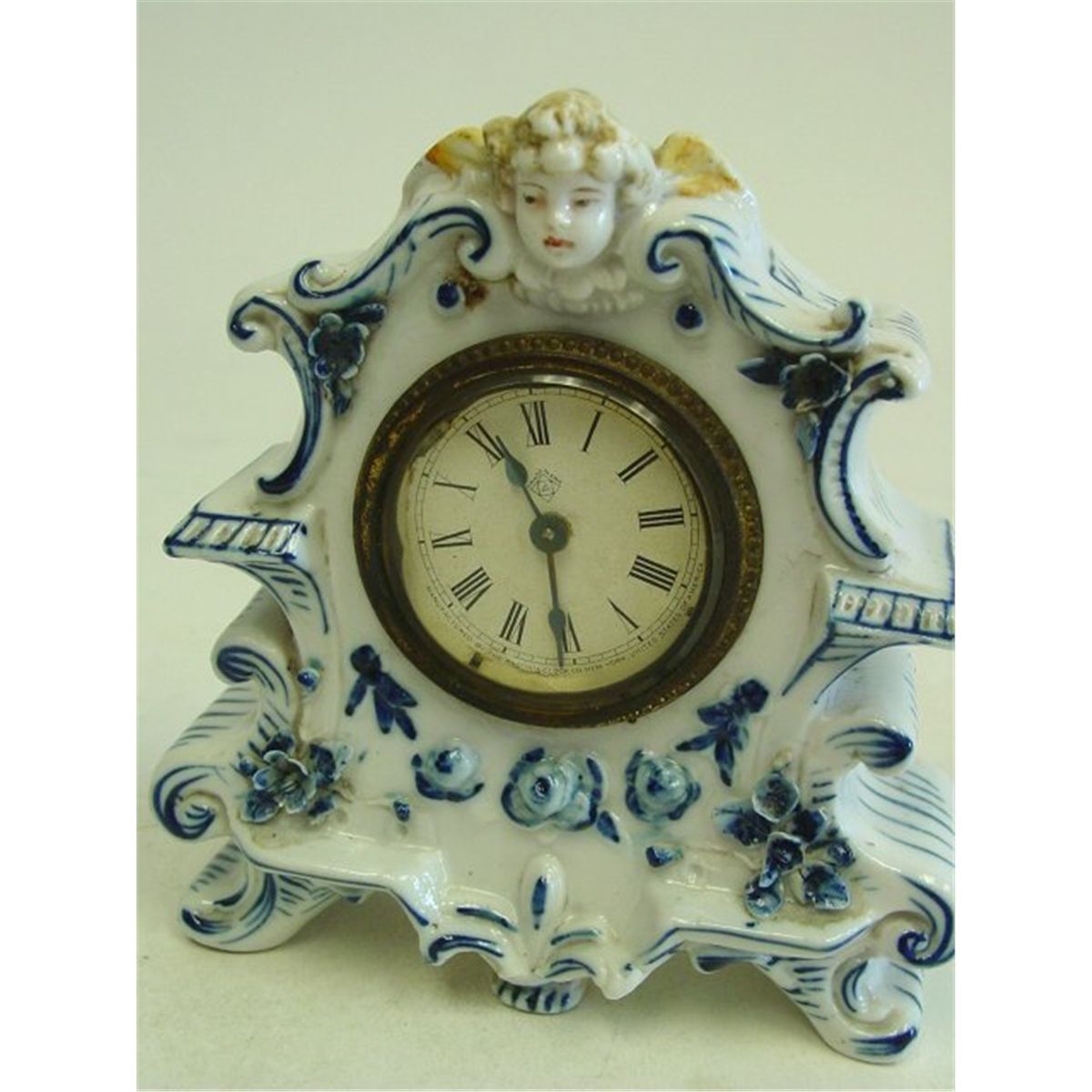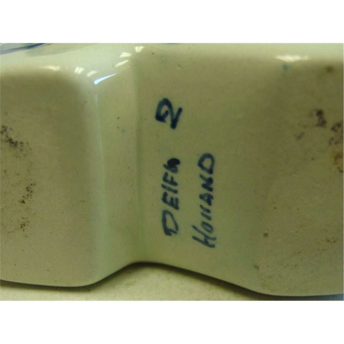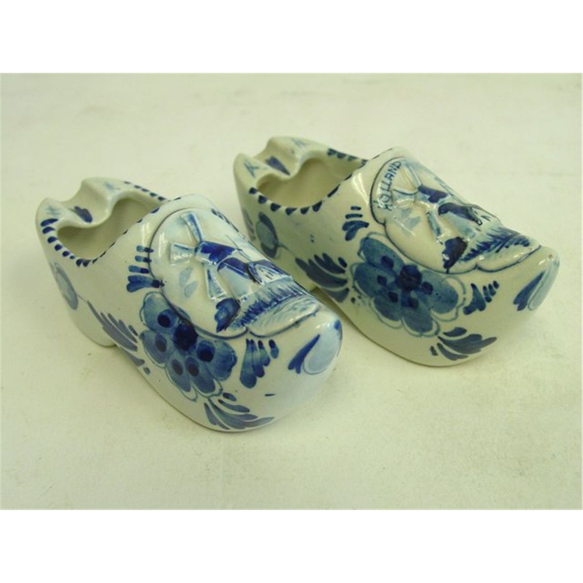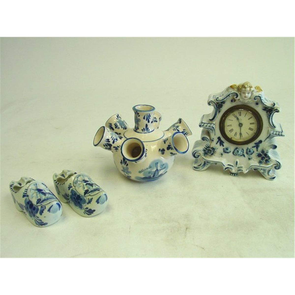 19th-20th c. small blue & white porcelain clock, Delft vase & pair shoes. Please read our terms of sale.