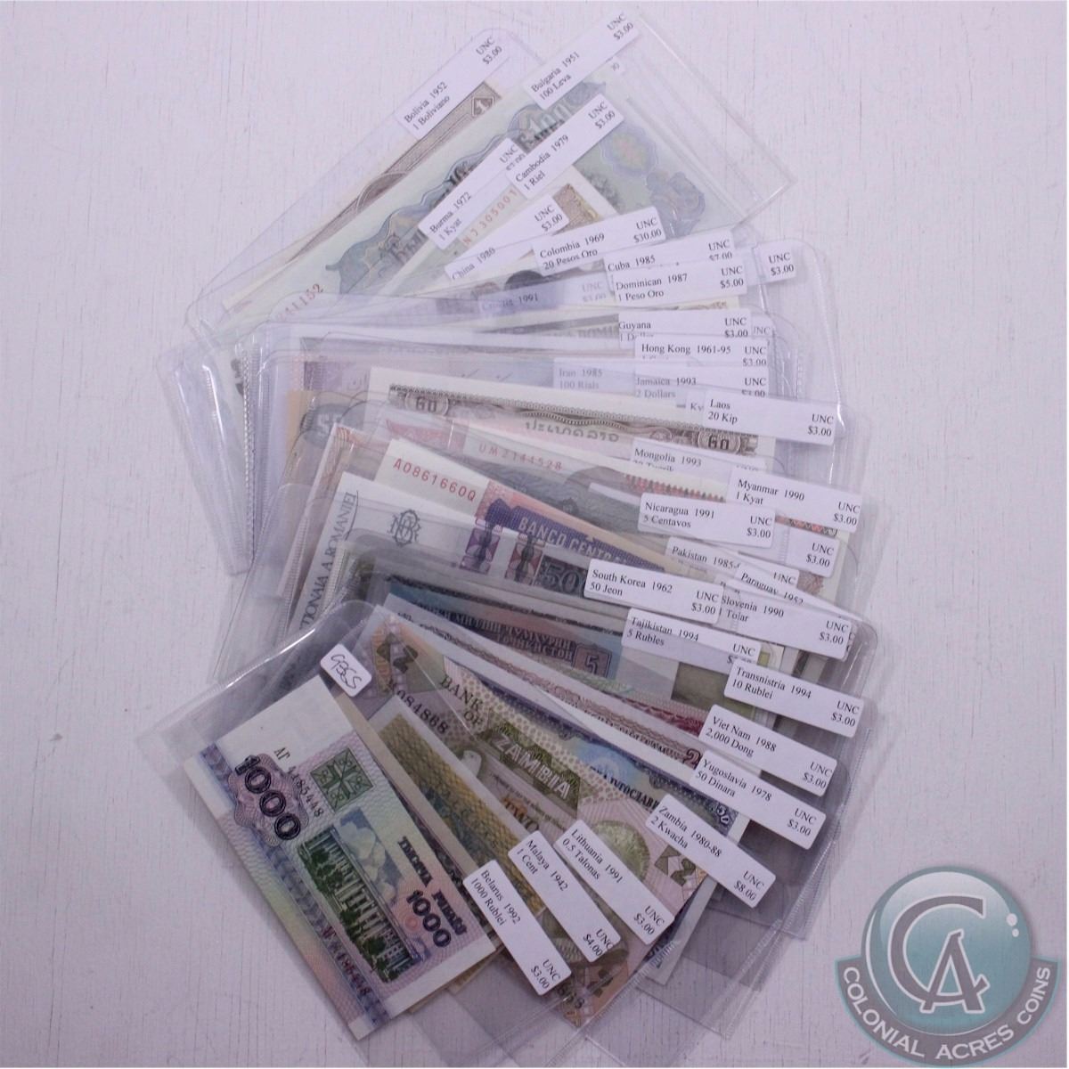Group lot of forty different world banknotes from 40 different countries all in UNC Condition.