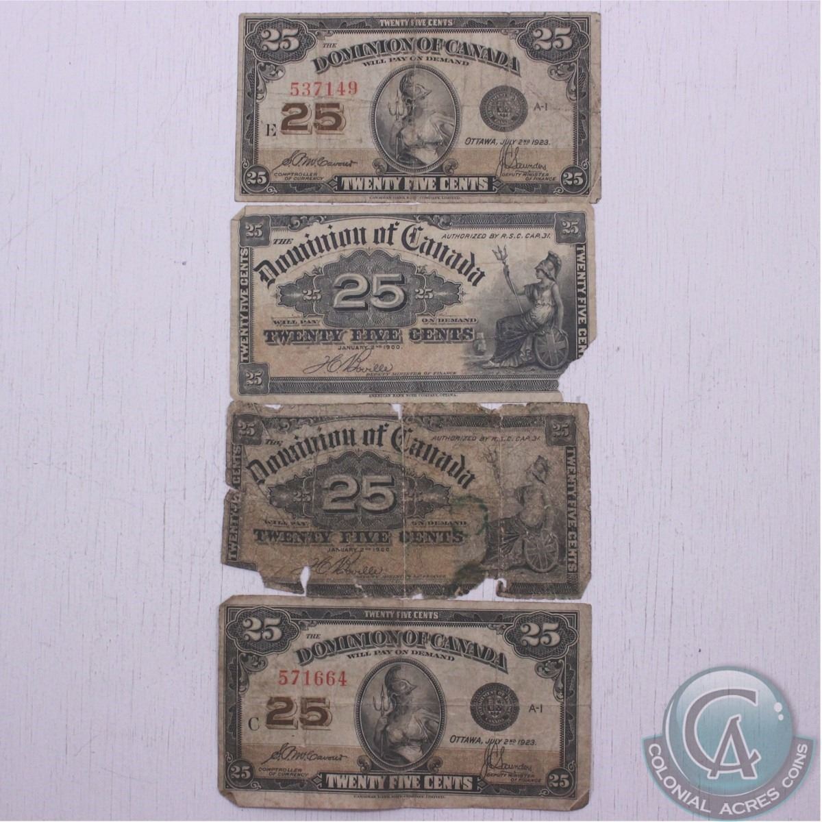 Group lot of four Canada 25ct 'shinplaster' notes from the Dominion of Canada. 4pcs