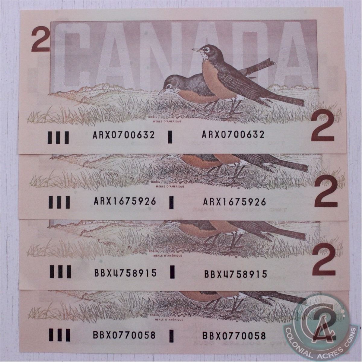 Group lot of four second generation replacement notes from the 1986 bird series $2.00 issue all in UNC Condition.
