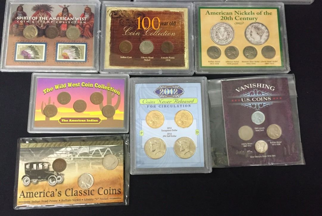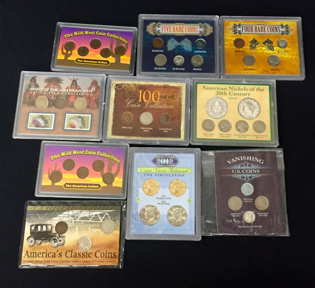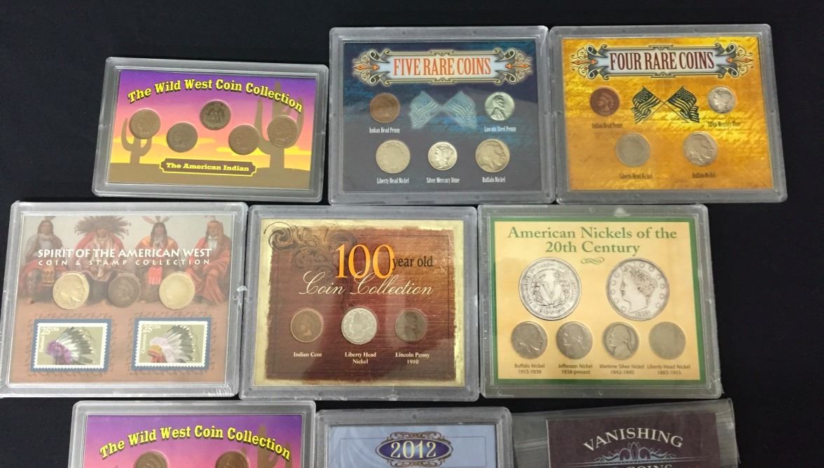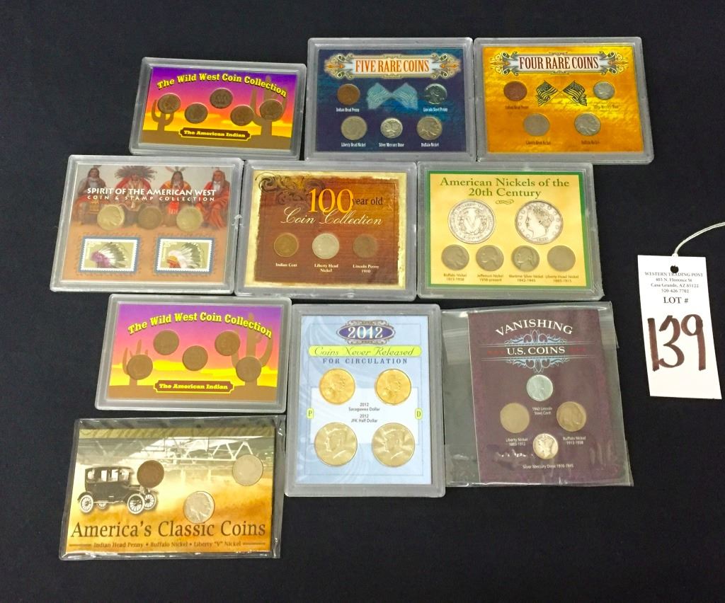 There are 10 various, collectible coins sets included in this group. A lot of western themes! Please look closely at pics - they are an important part of our description. Shipping: There will be a $5 handling / packaging fee for shipping this lot. The actual cost of postage will be added on top of that.