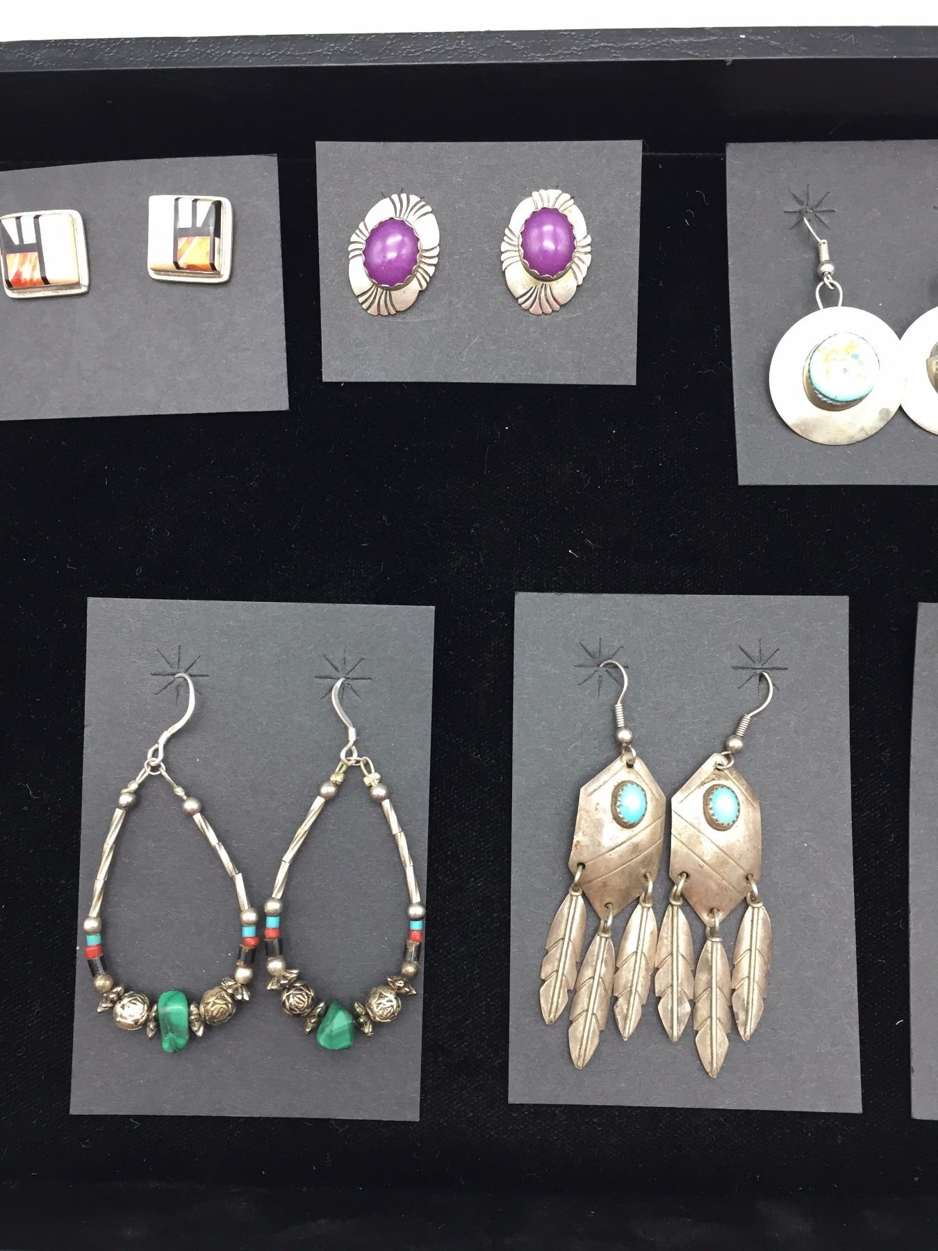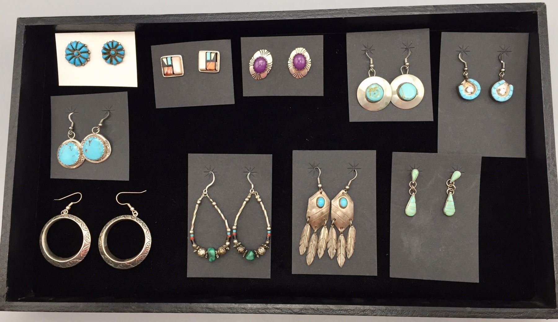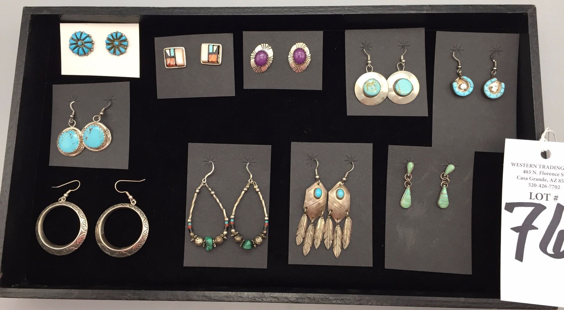 Description: Group of 10 pairs of earrings in various sizes and styles. Most are sterling silver. Maker: Various. Approx. Age: Vintage to modern. Size: Varies. sizes. Combined weight of approx. 82 grams. Condition: Good for its age, normal wear expected. Please look closely at the pictures - they are an important part of our description. Shipping: There will be a $5 handling / packaging fee for shipping this lot. The actual cost of postage will be added on top of that.