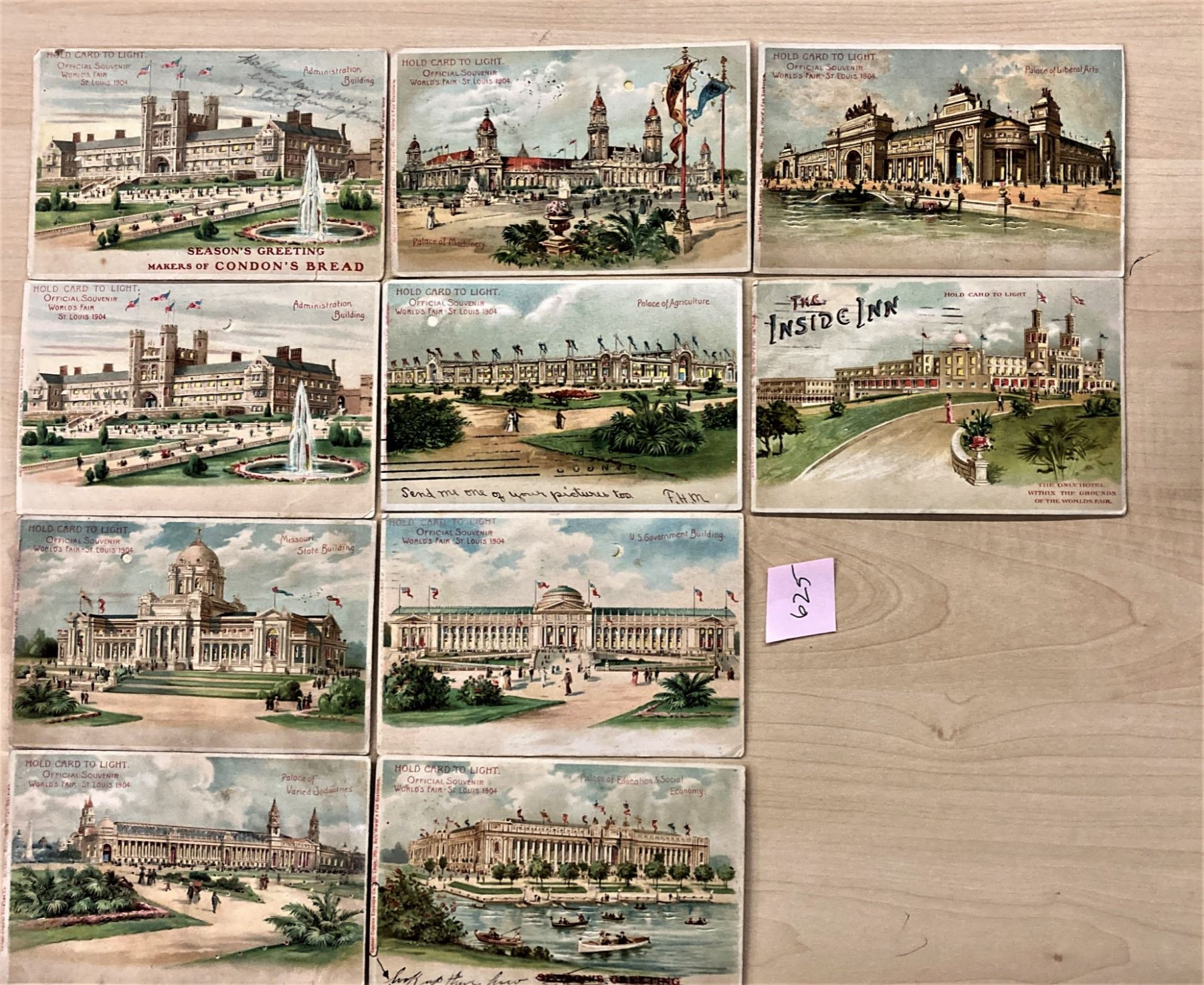 Group of 10 St. Louis Exposition Hold to Light Postcard Including The Inside Inn