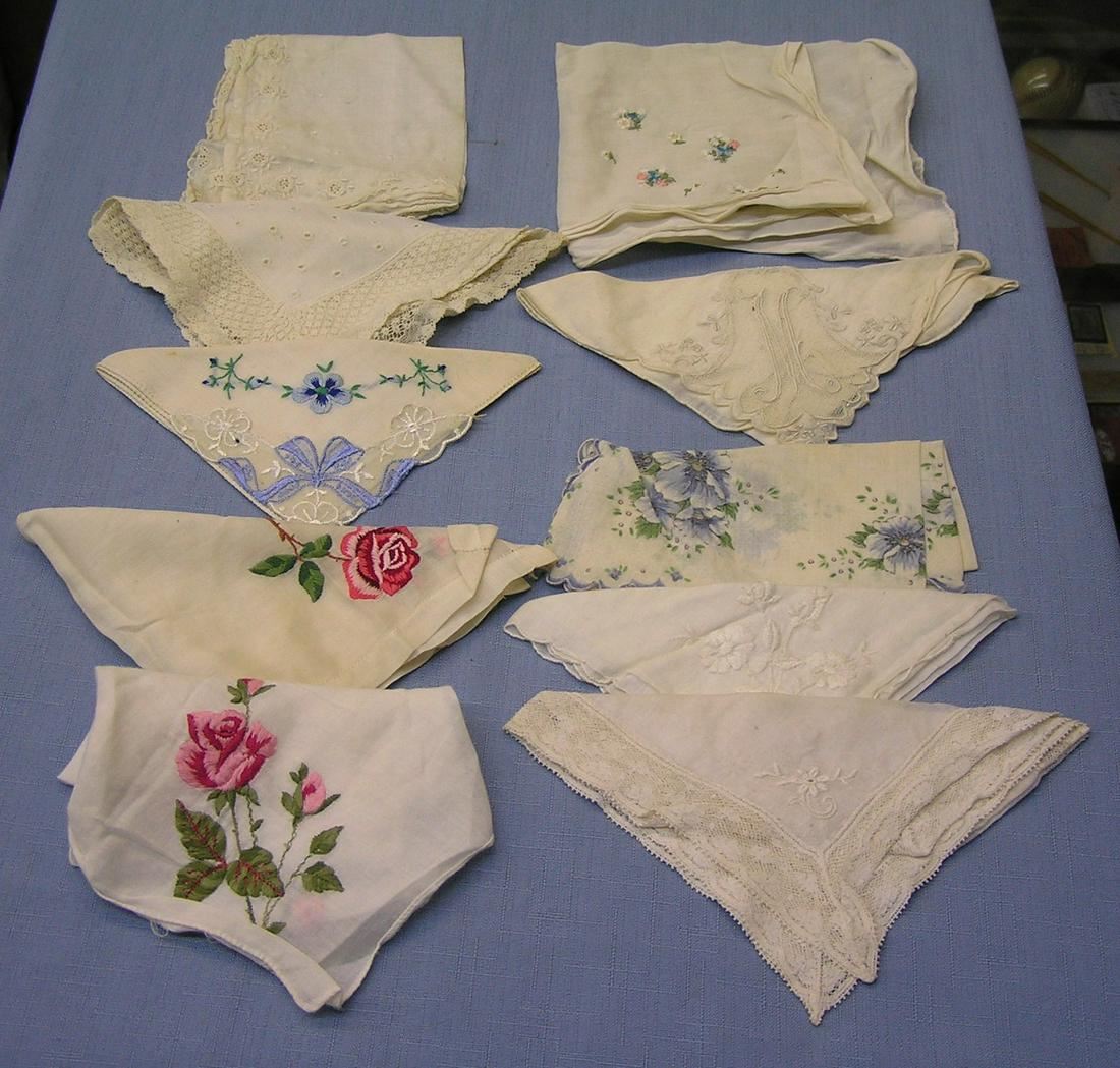 Group of 10 hand embroidered hankies est. value $50.00-$60.00