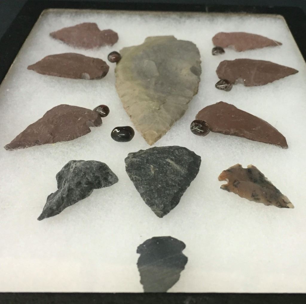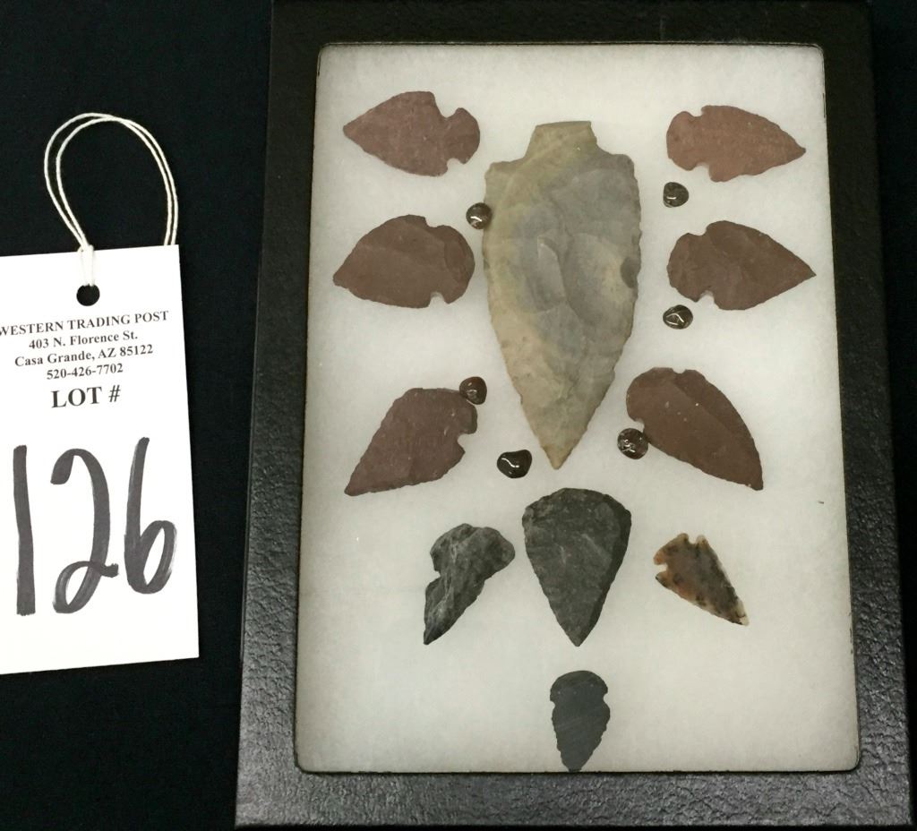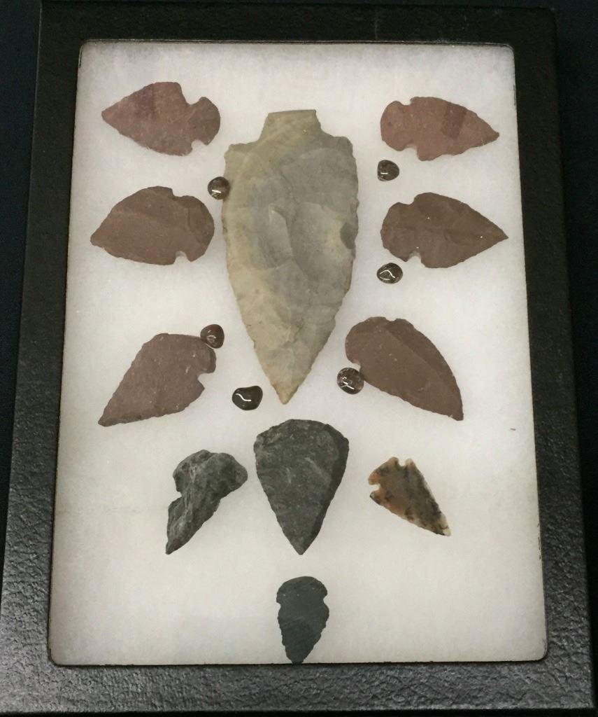 There are 11 arrowheads nicely displayed in a shadowbox here. The person who brought them in, said they came from Lathrup Wells, Nevada. Some appear to be contemporary and some older. No other Providence known. Please look closely at the pics as they are an important part of our description. Shipping: There will be a $5 handling / packaging fee for shipping this lot. The actual cost of postage will be added on top of that.