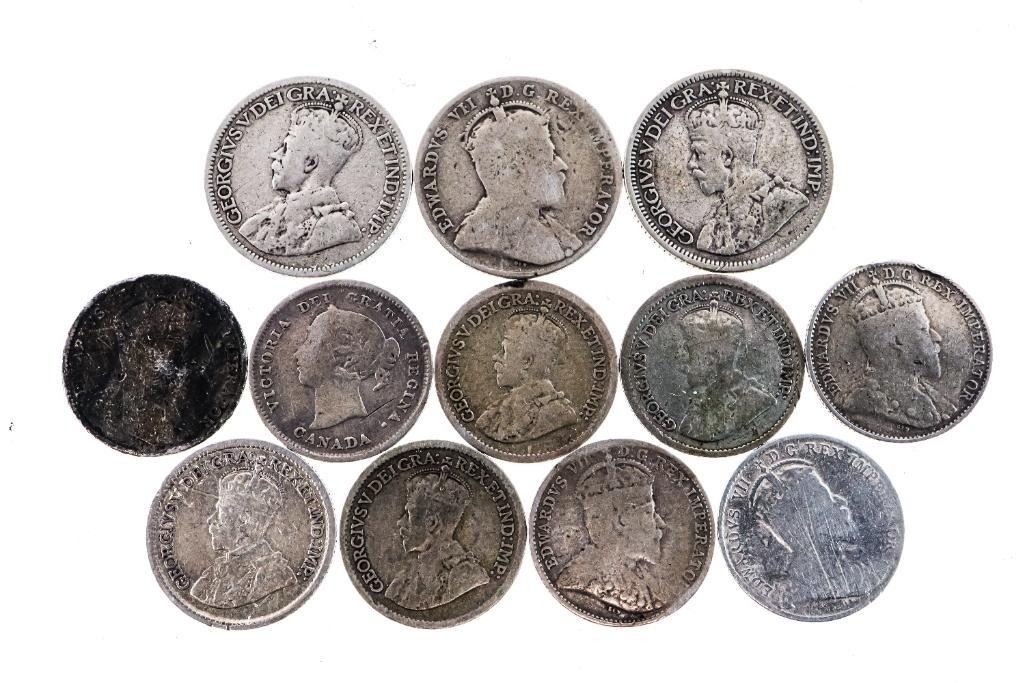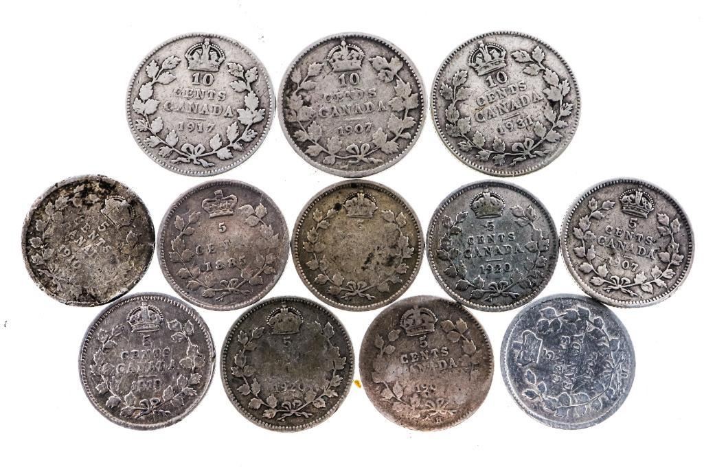 Group of 12 Canada Historical Silver 5 & 10 cents, pre Date 1937