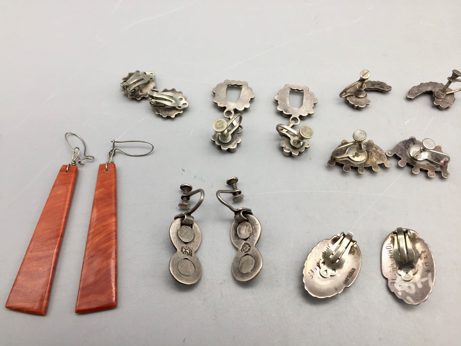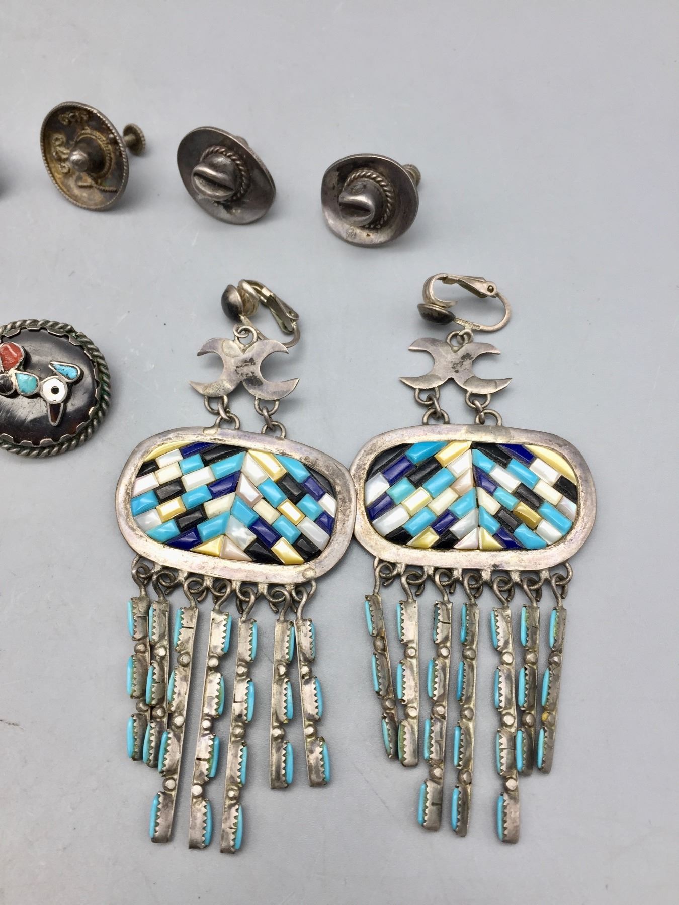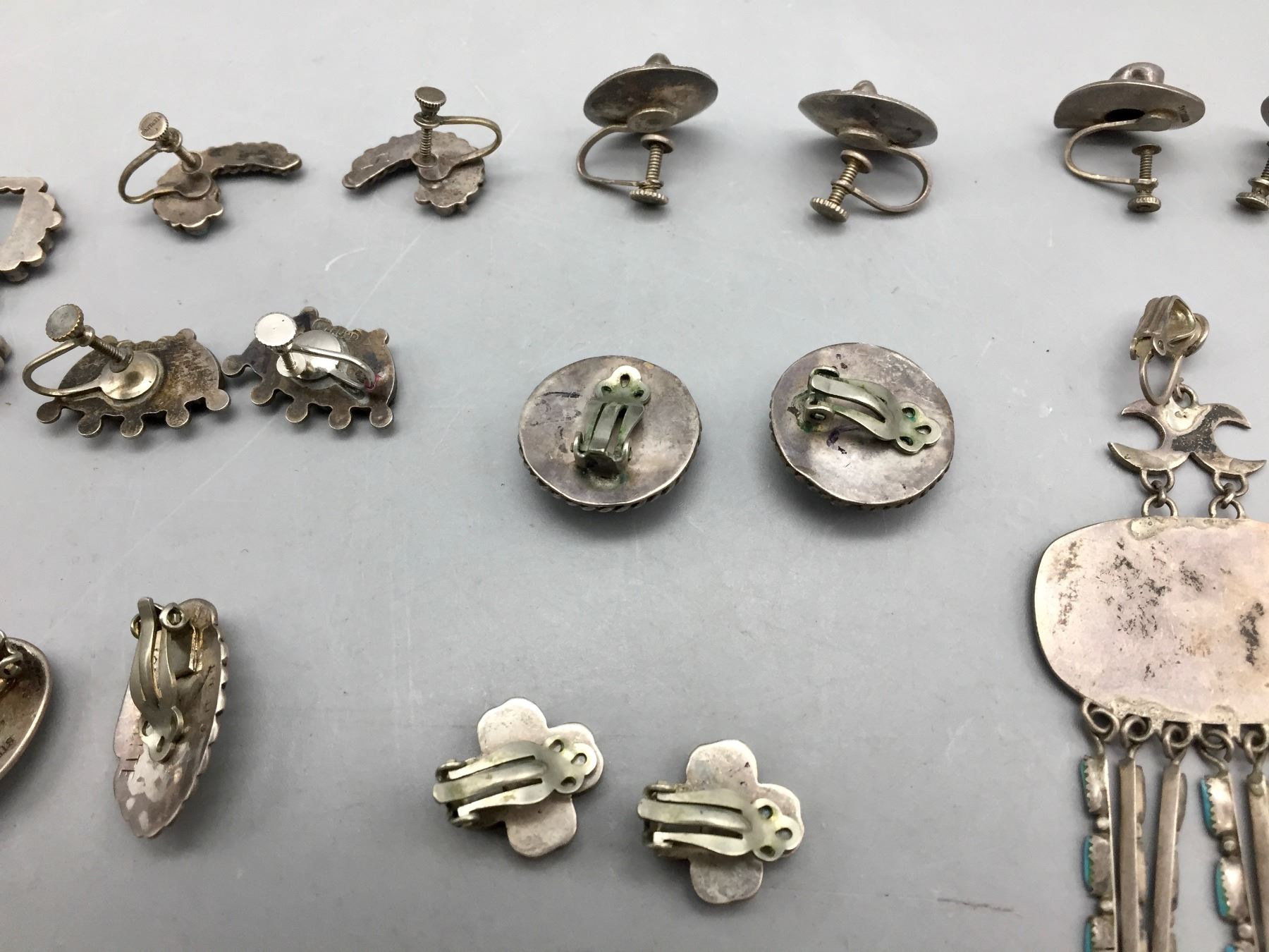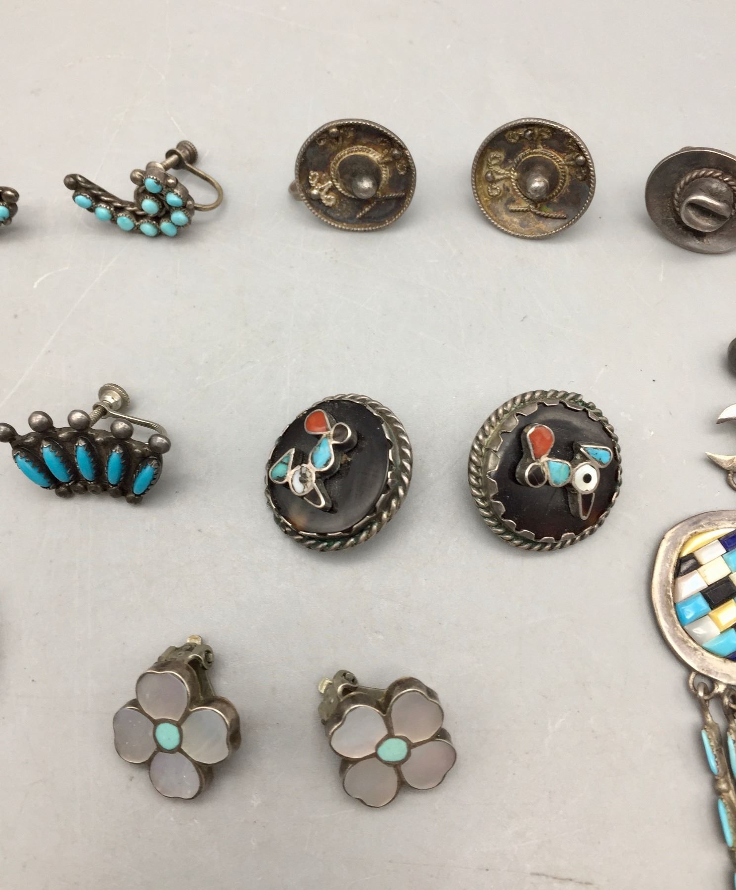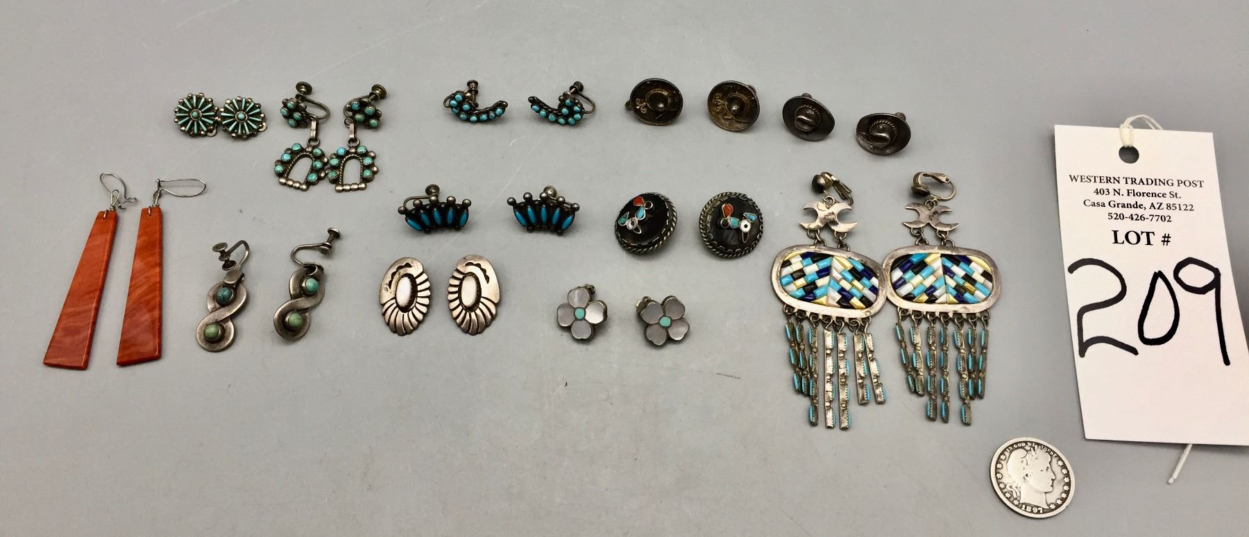Description: Presented for sale in this lot is a group of 12 pair of earrings. Some feature turquoise and they are various styles. Take a look! Appear to be sterling silver where applicable. Maker: Various. Approx. Age: Vintage and modern. Size: Varies. Combined weight of 91.6 grams. Condition: Good for their age, normal wear expected. Please look closely at the pictures - they are an important part of our description. Shipping: There will be a $5 handling / packaging fee for shipping this lot. The actual cost of postage will be added on top of that.