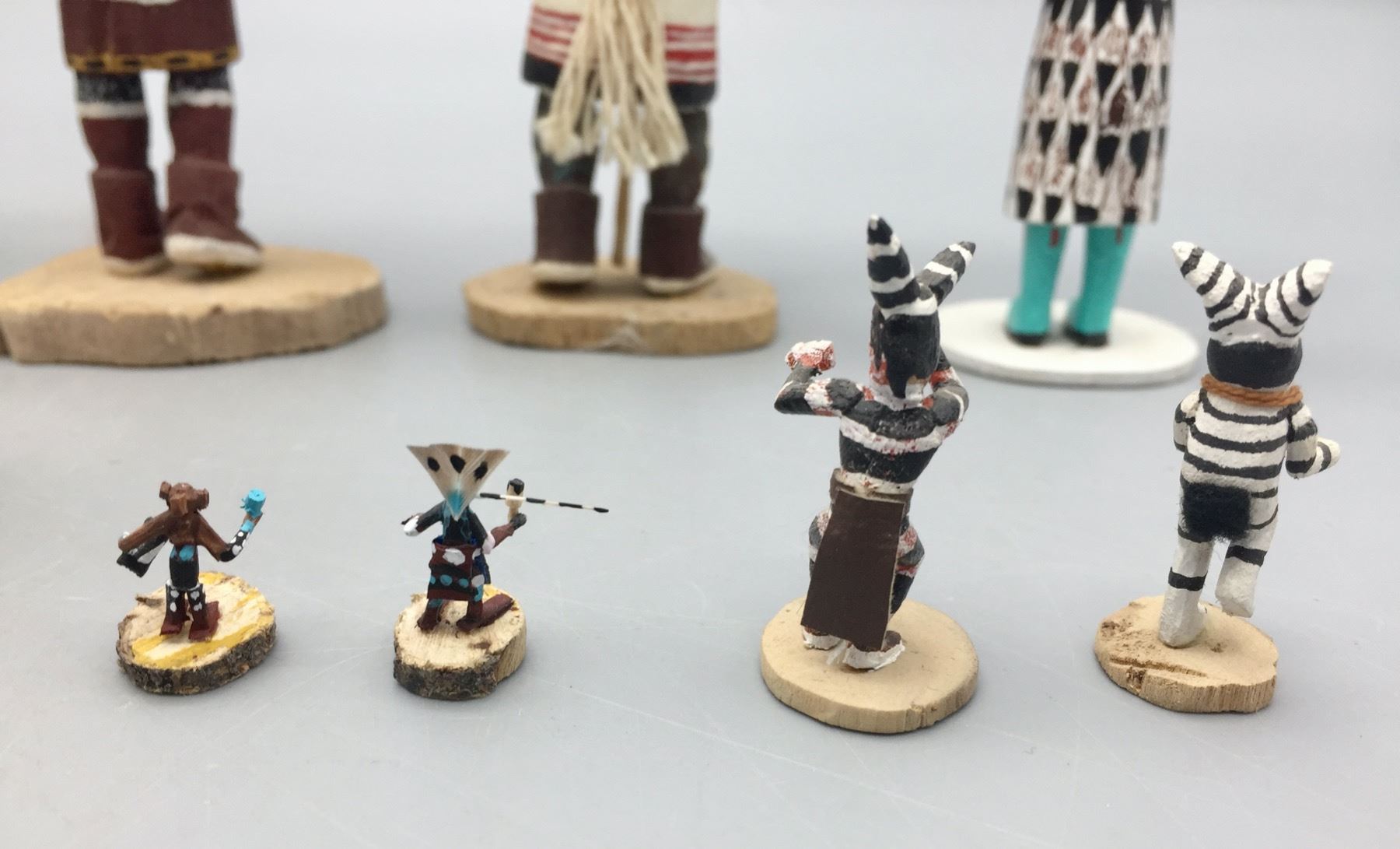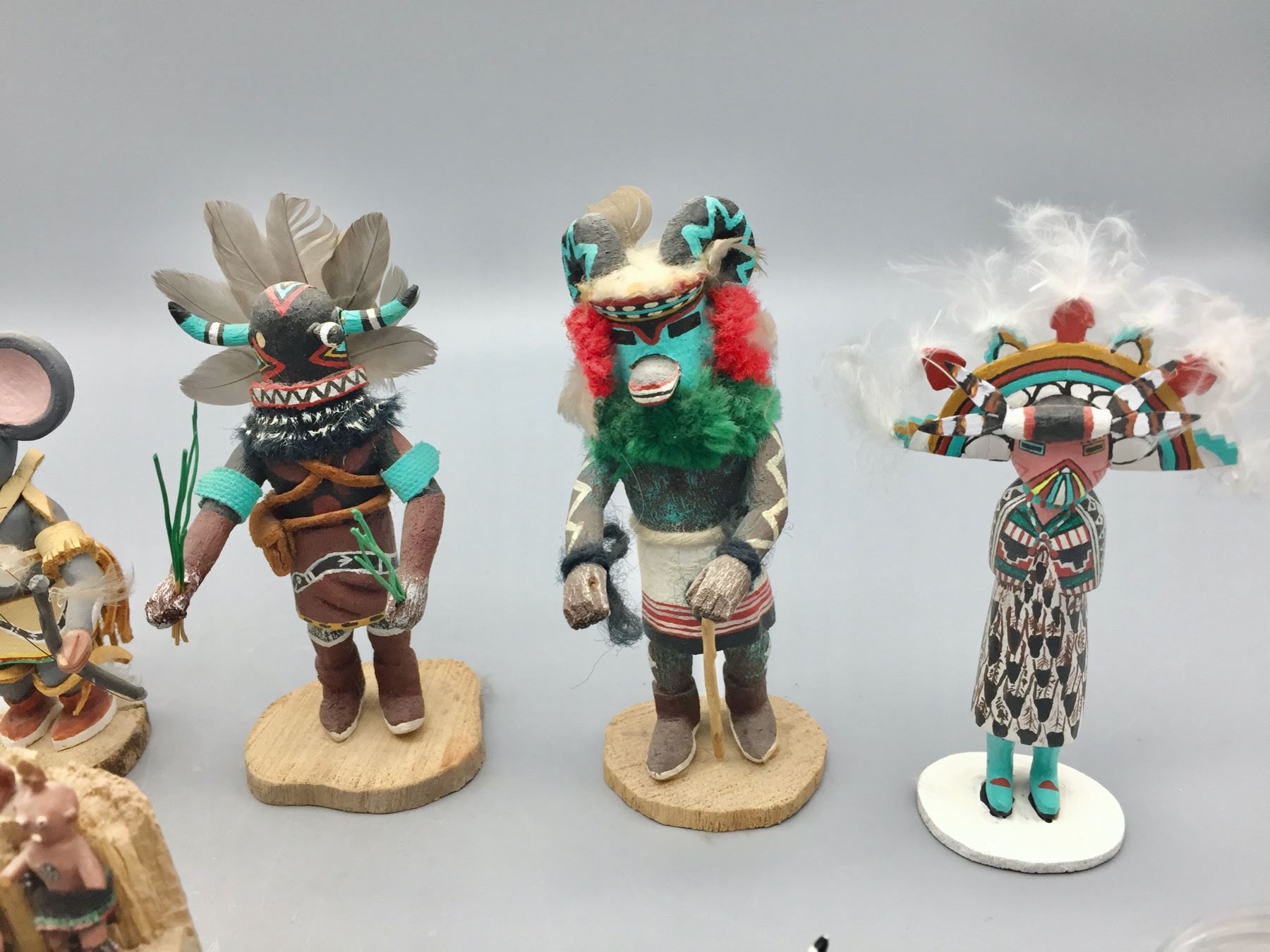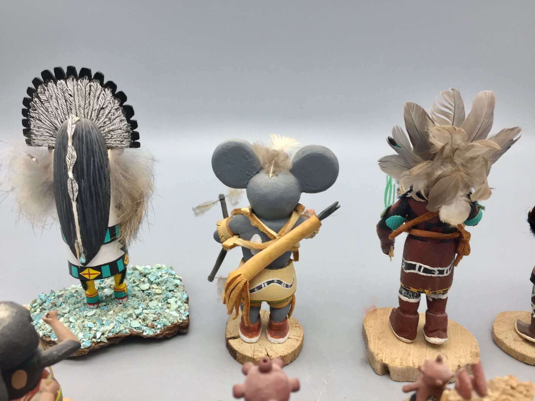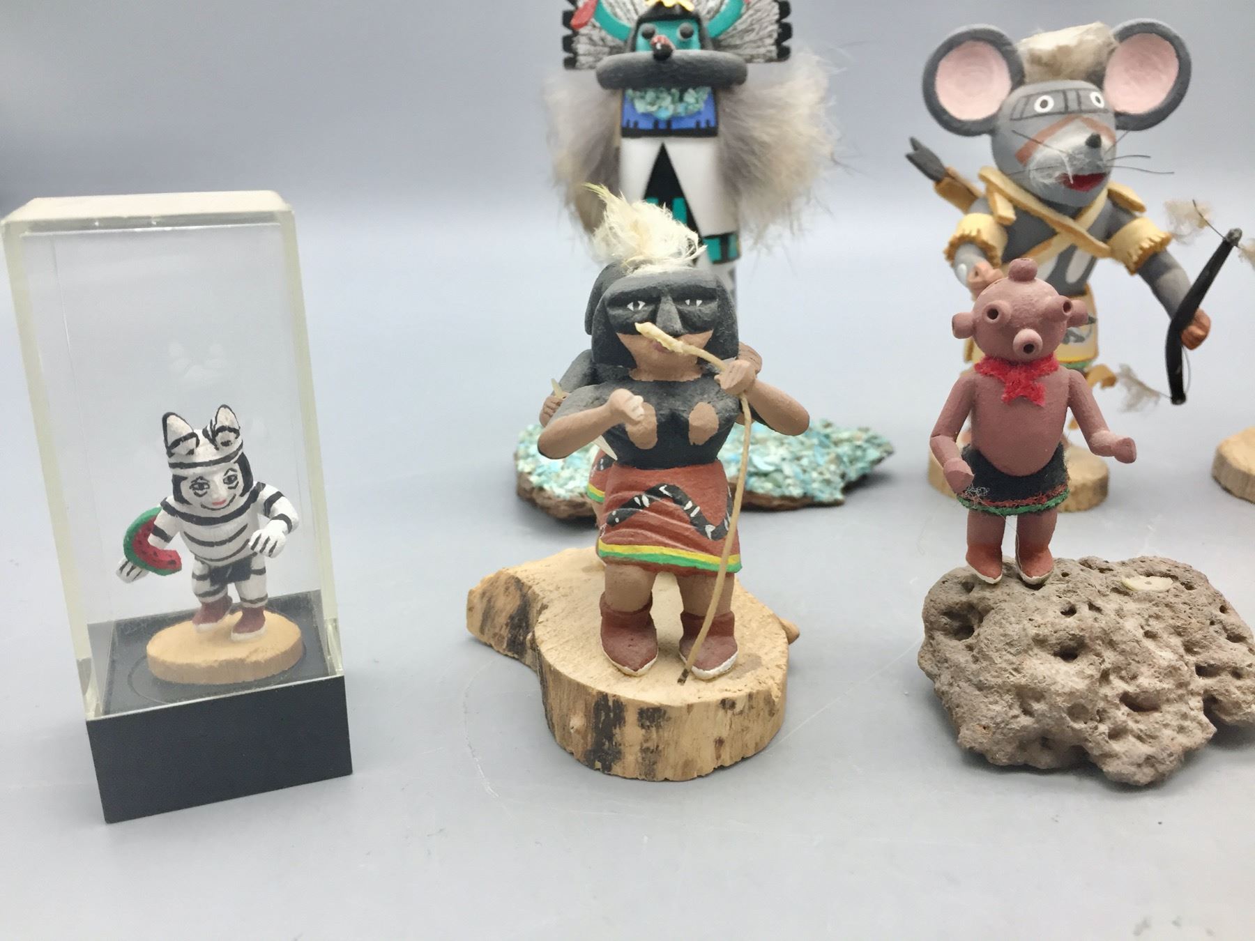 Description: For sale in this lot is a group of 14 miniature handmade Kachinas in a variety of sizes and styles. Maker: Various. Approx. Age: Vintage to modern. Size: Small. Condition: Pretty good for their ages, some wear and imperfections expected. Please look closely at the pictures - they are an important part of our description. Shipping: There will be a $15 handling, packaging fee for shipping this lot. The actual cost of postage will be added on top of that.