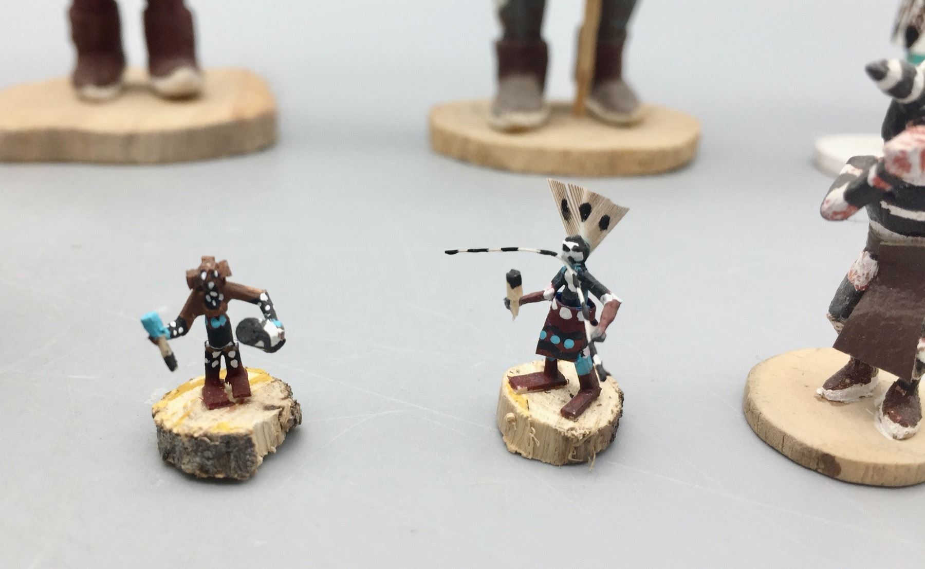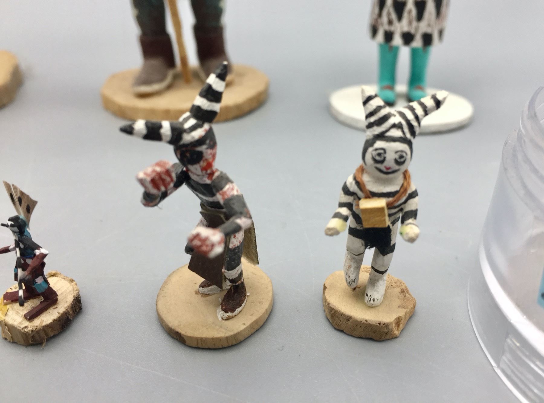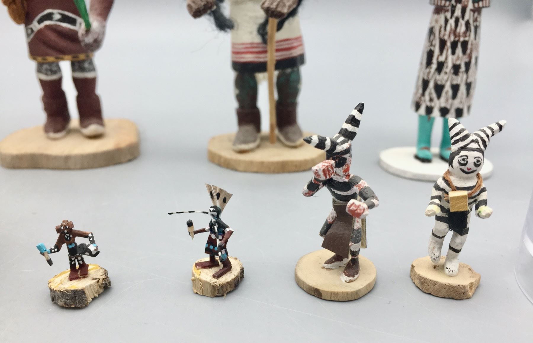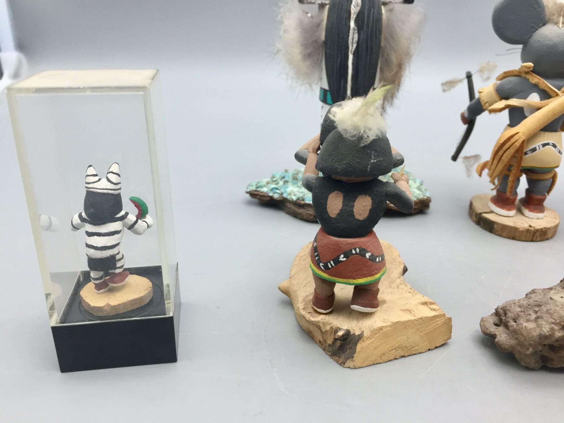 Description: For sale in this lot is a group of 14 miniature handmade Kachinas in a variety of sizes and styles. Maker: Various. Approx. Age: Vintage to modern. Size: Small. Condition: Pretty good for their ages, some wear and imperfections expected. Please look closely at the pictures - they are an important part of our description. Shipping: There will be a $15 handling, packaging fee for shipping this lot. The actual cost of postage will be added on top of that.