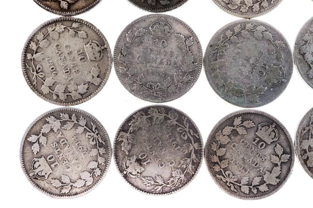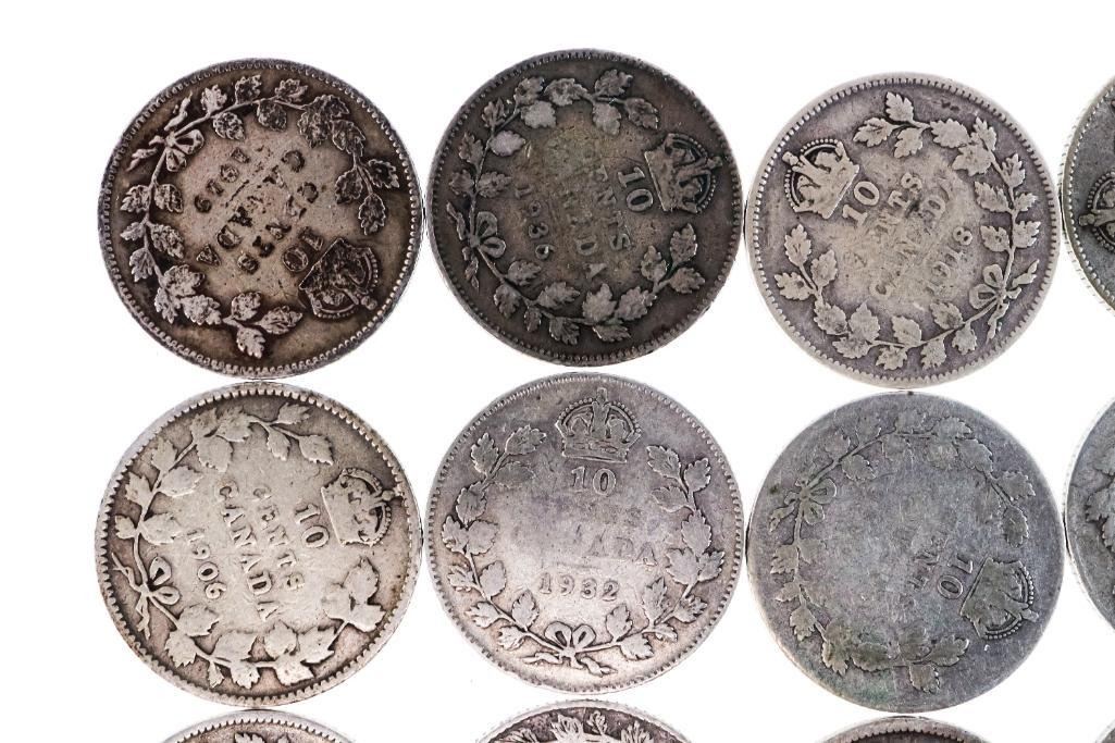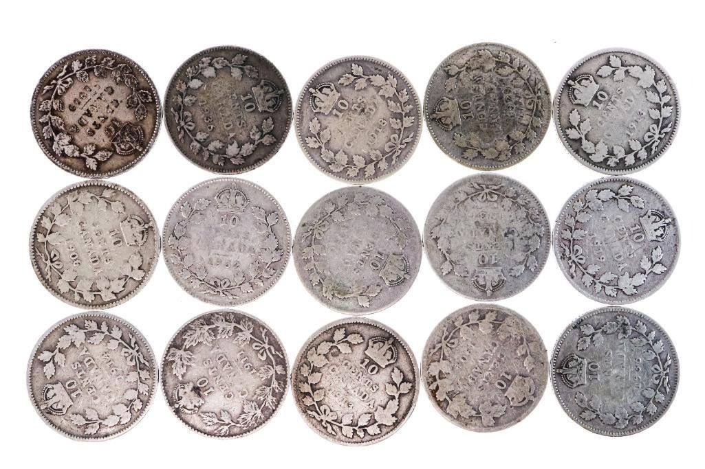 Group of 15 Canada Historical Silver Ten cents, Pre Date 1937
