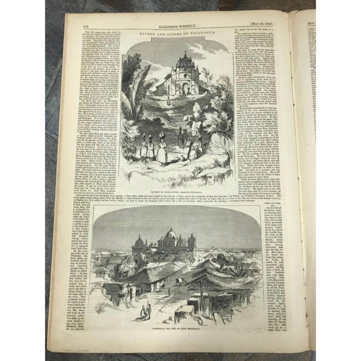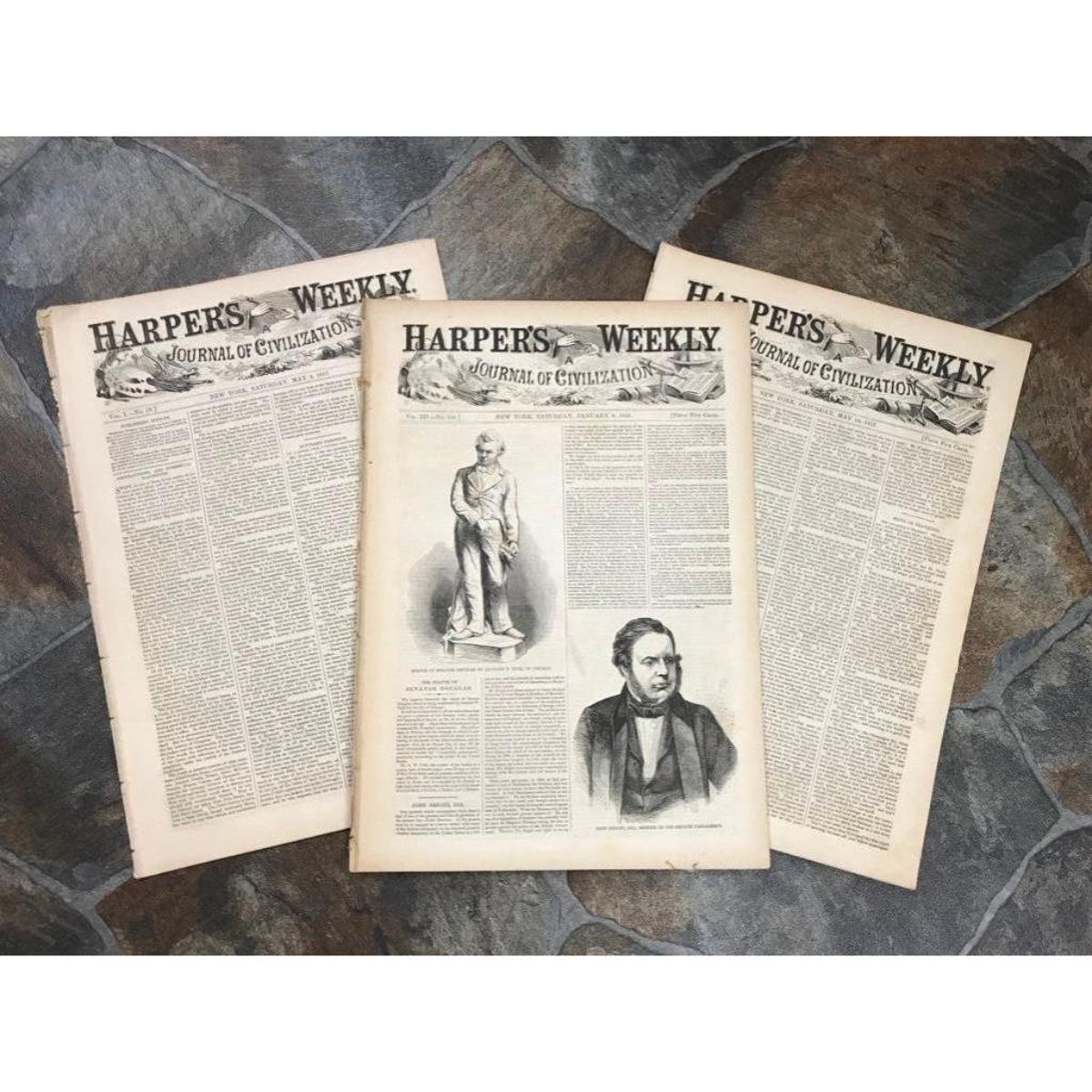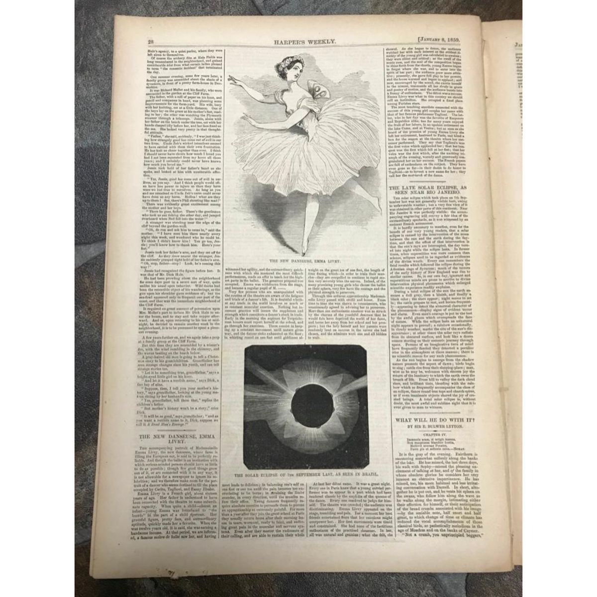 Group of 3 Harper's Weekly Illustrated Newspapers dated 1857 & 1859, with engravings including steamships, a solar eclipse, pearls from Tiffany & Co, fashions of the day & from the past, Senator Stephen Douglas & scenes in Nicaragua.