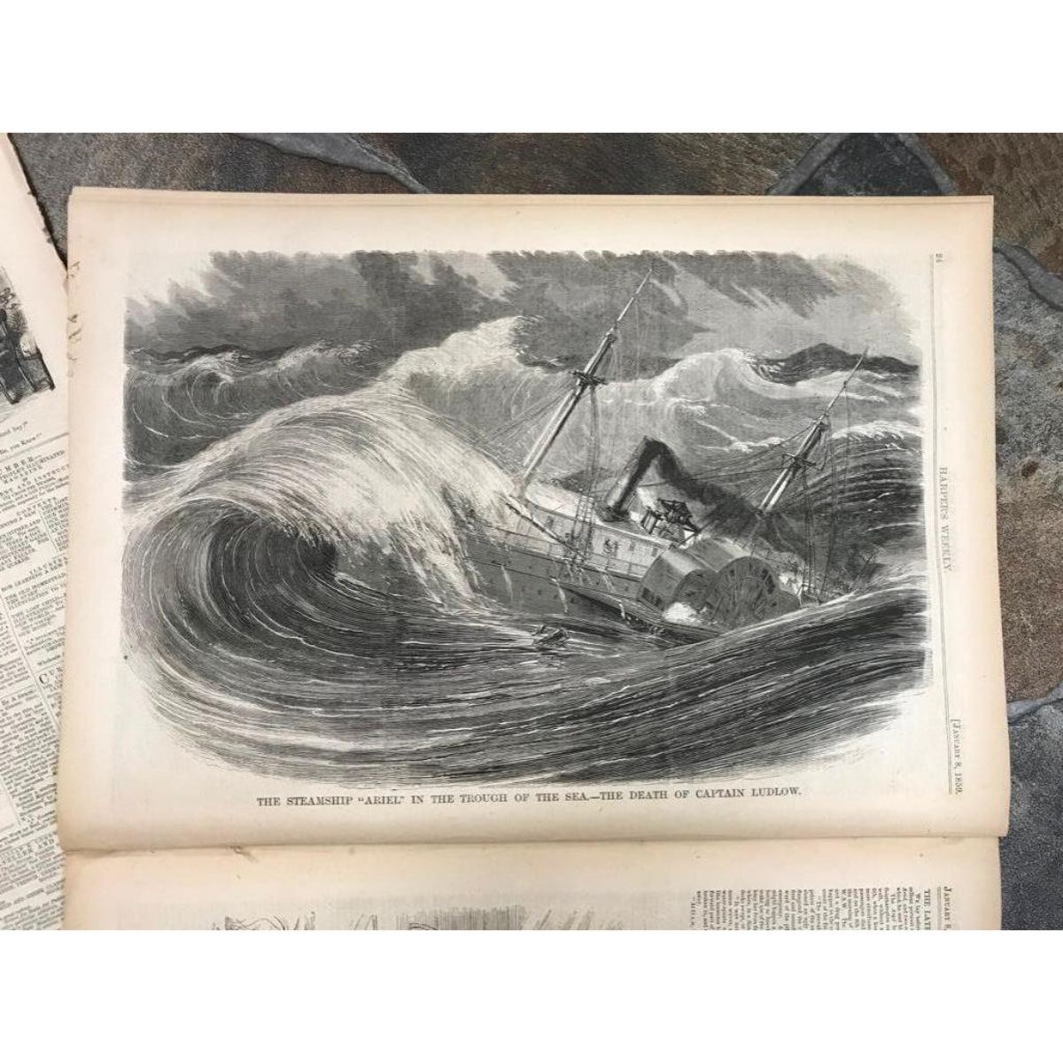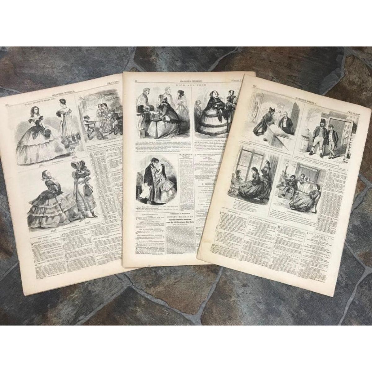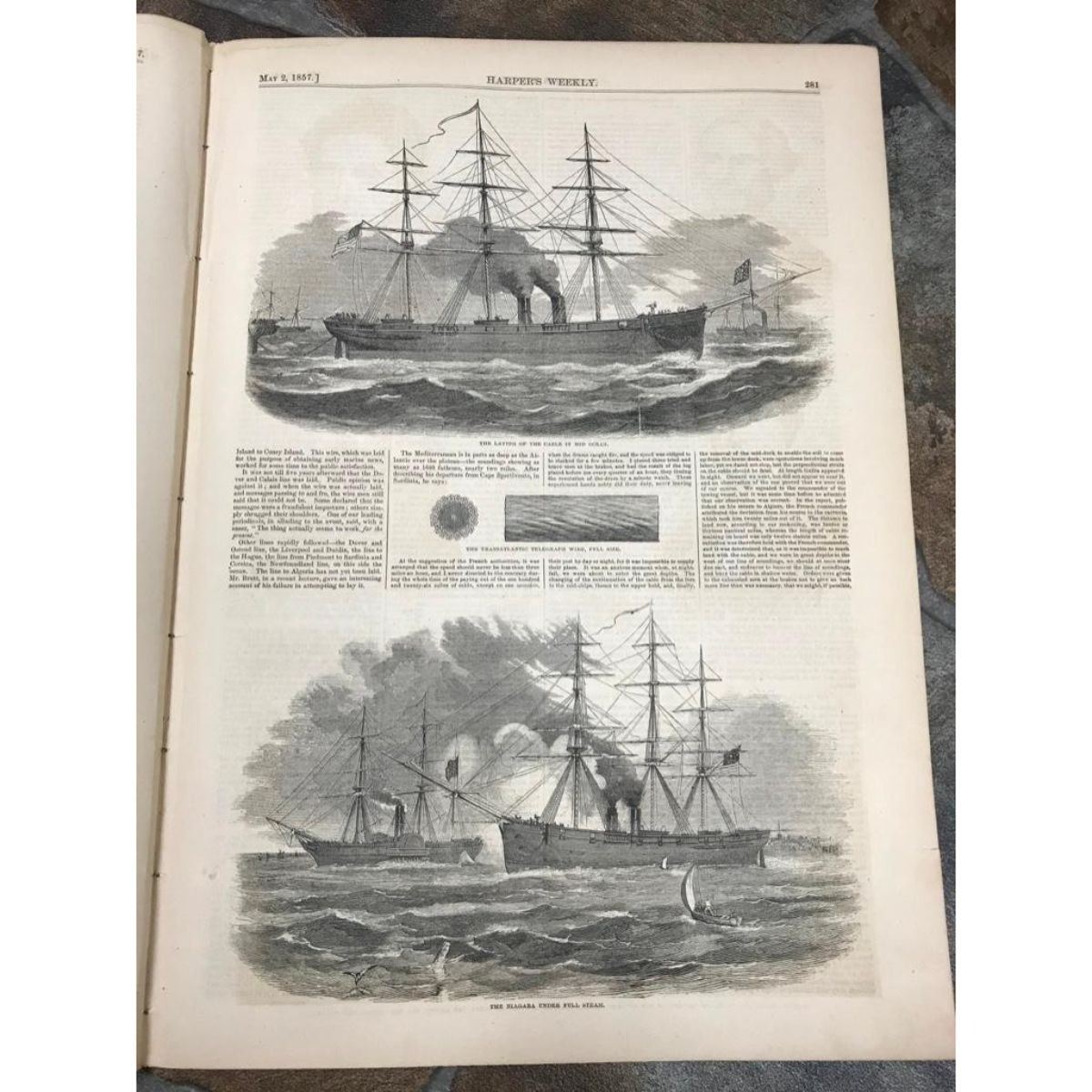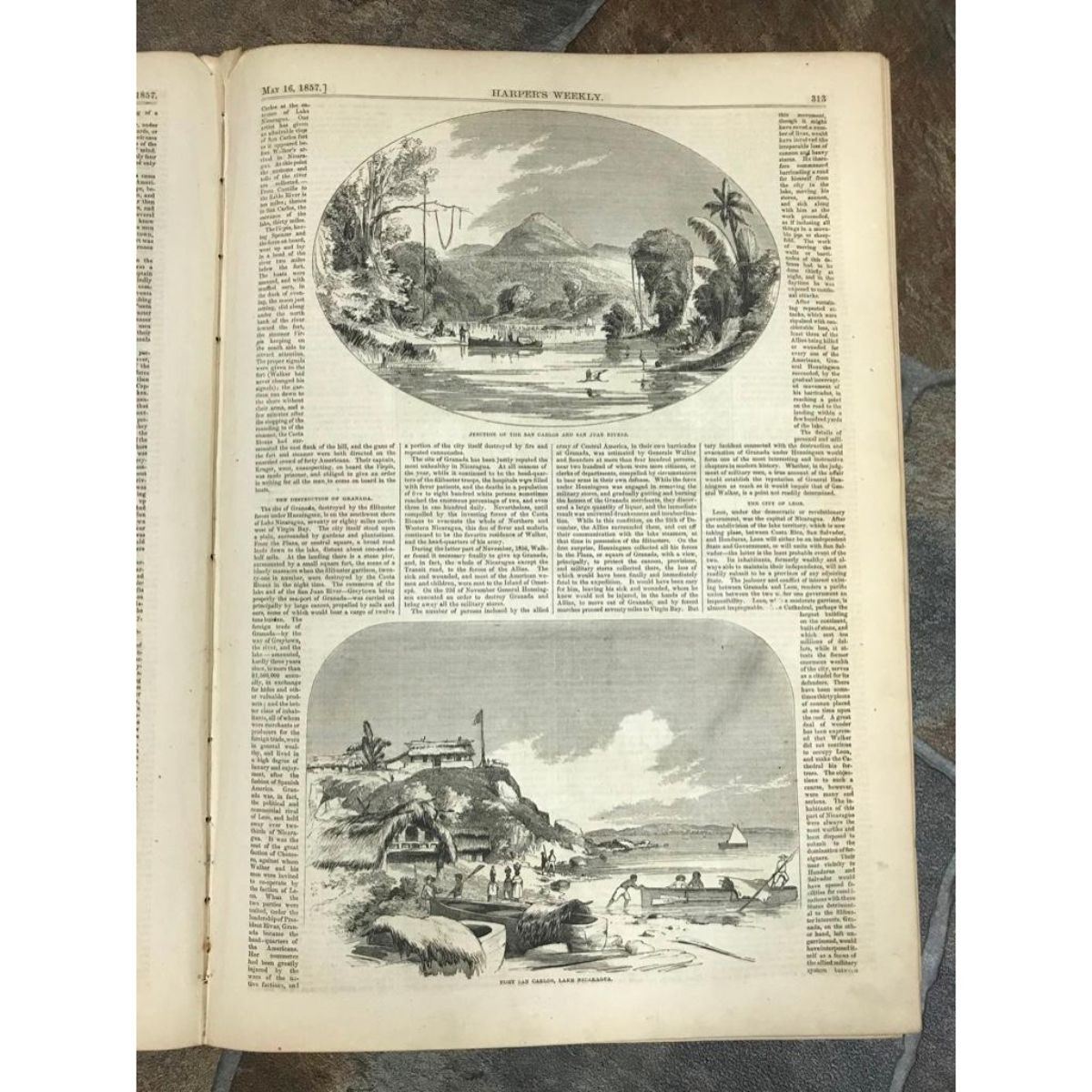 Group of 3 Harper's Weekly Illustrated Newspapers dated 1857 & 1859, with engravings including steamships, a solar eclipse, pearls from Tiffany & Co, fashions of the day & from the past, Senator Stephen Douglas & scenes in Nicaragua.