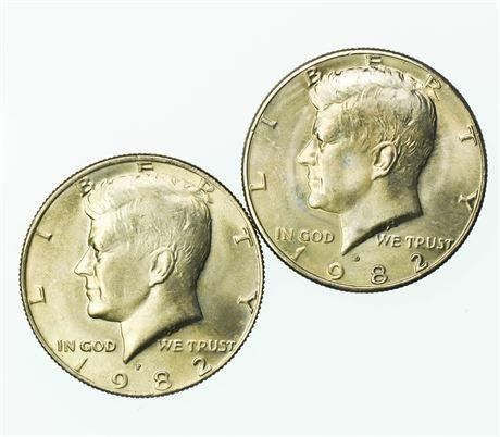 Group of 2 1982 and 1982-D Kennedy Half Dollars