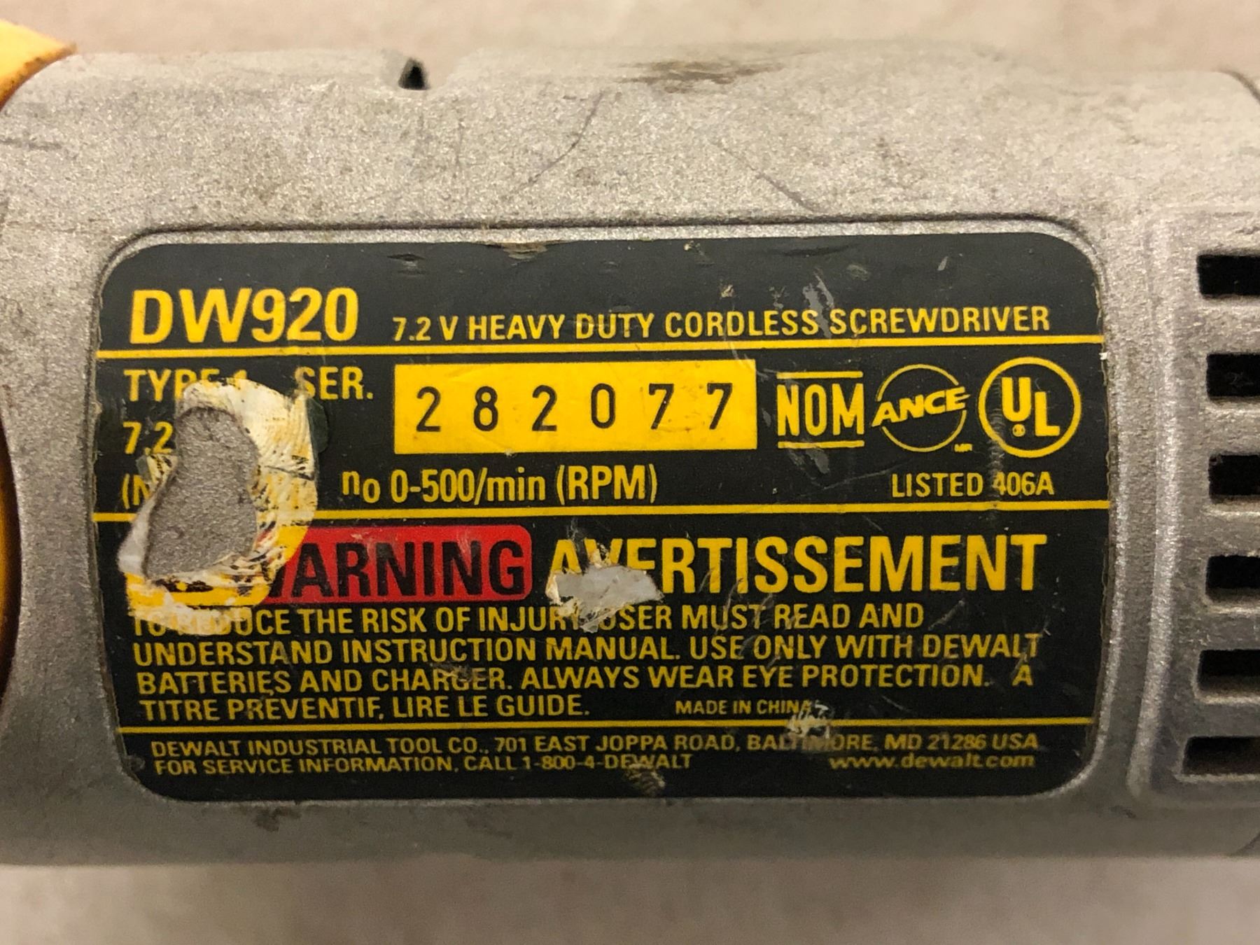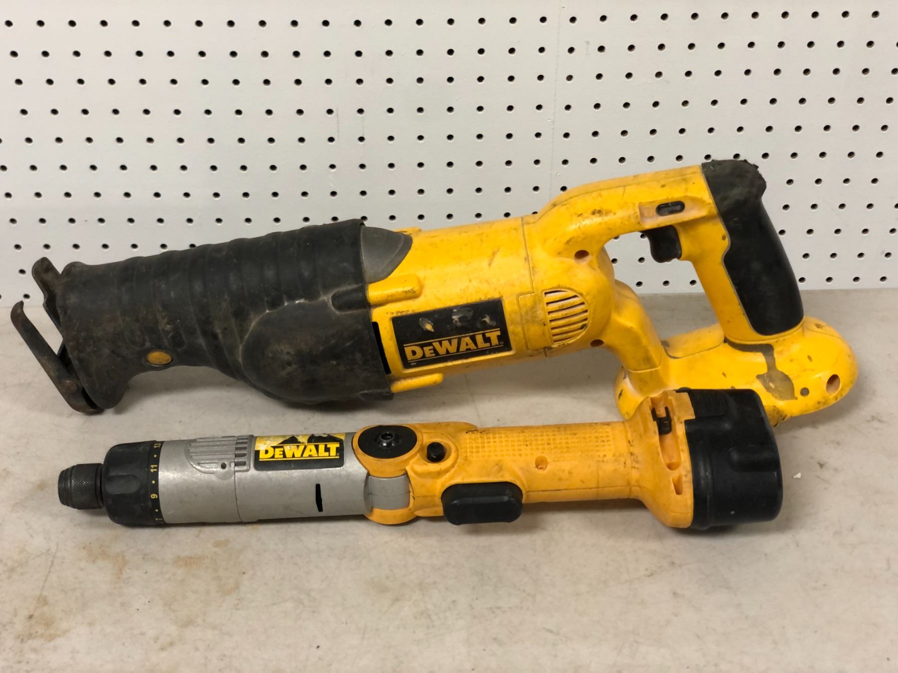 Group of 2 Dewalt power tools - includes Dewalt variable speed reciprocating saw & Dewalt 7.2V heavy duty cordless screwdriver - model DW920