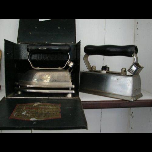 Group of 2 Ironing Items Sunbeam in Case, Old Electric weighing 15 lbs.