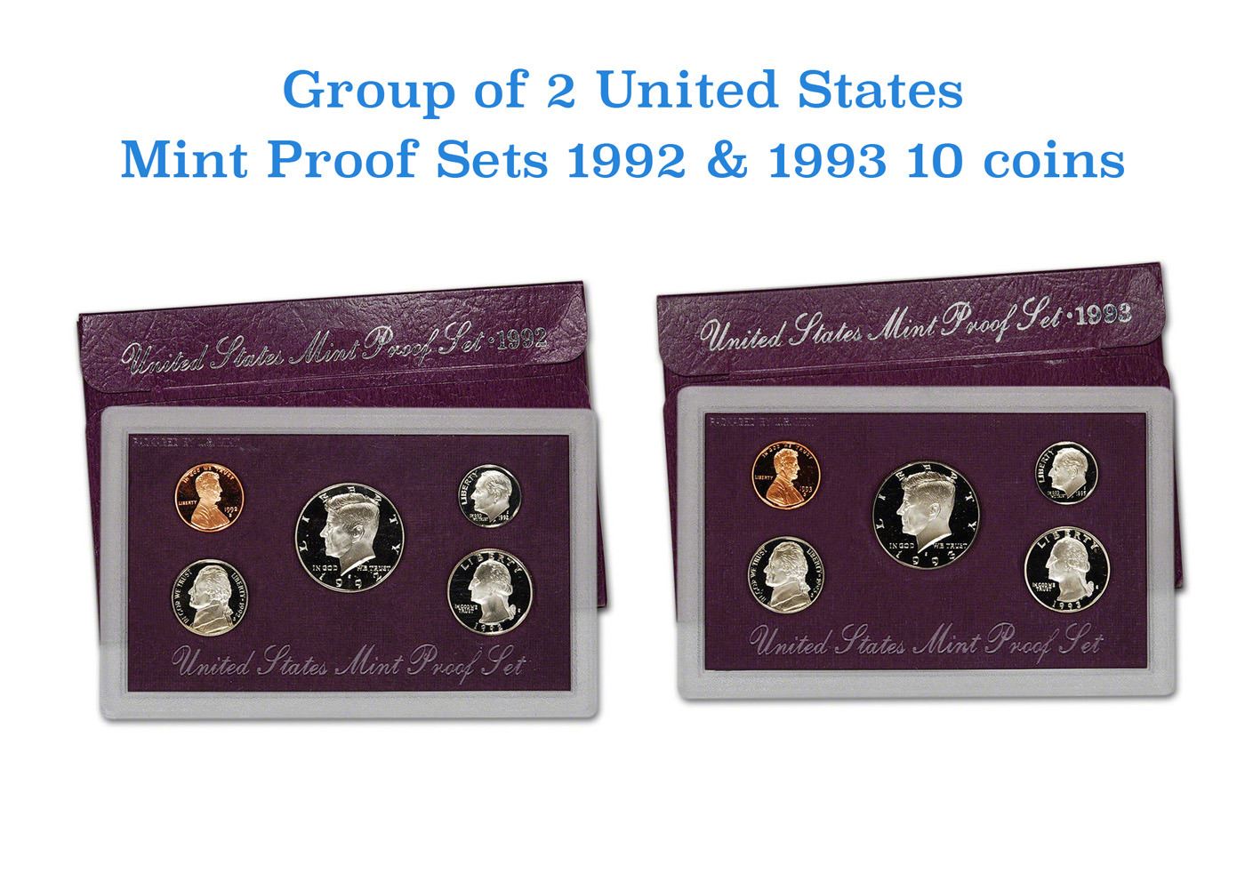 Group of 2 United States Mint Proof Sets 1992-1993 10 coins