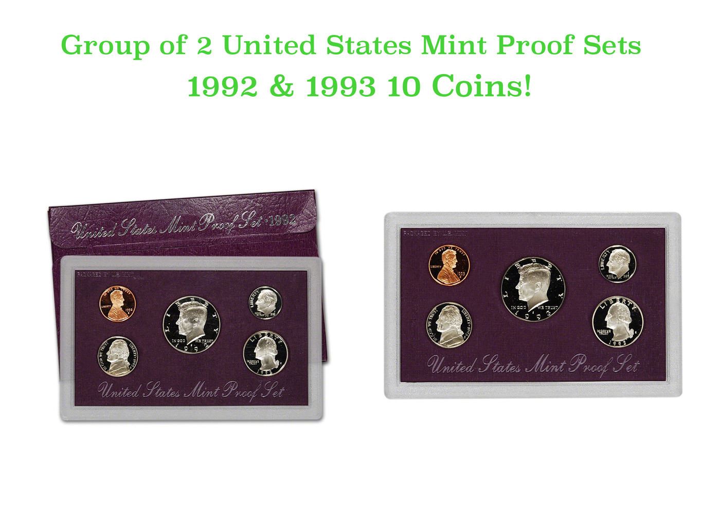 Group of 2 United States Mint Proof Sets 1992-1993 10 coins