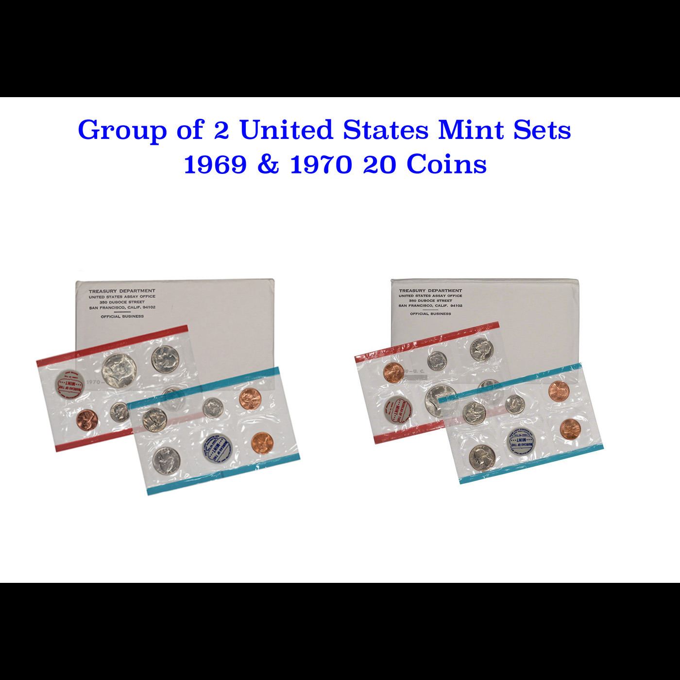 Group of 2 United States Mint Set in Original Government Packaging! From 1969-1970 with 20 Coins Ins