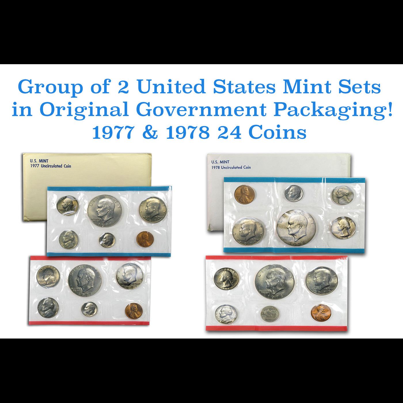 Group of 2 United States Mint Set in Original Government Packaging! From 1977-1978 with 24 Coins Ins