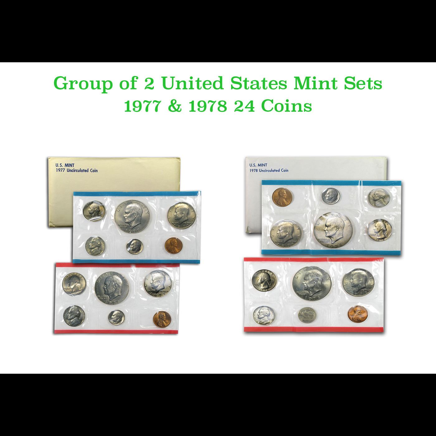 Group of 2 United States Mint Set in Original Government Packaging! From 1977-1978 with 24 Coins Ins