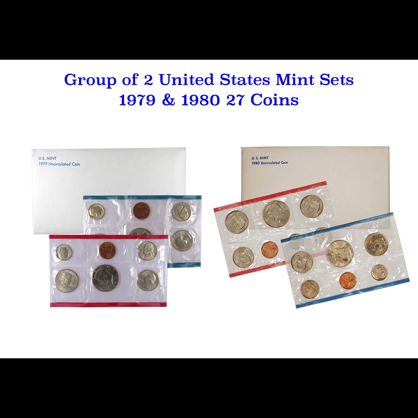 Group of 2 United States Mint Set in Original Government Packaging! From 1979-1980 with 25 Coins Ins