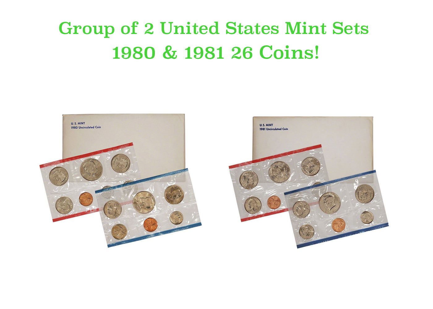 Group of 2 United States Mint Set in Original Government Packaging! From 1980-1981 with 26 Coins Ins