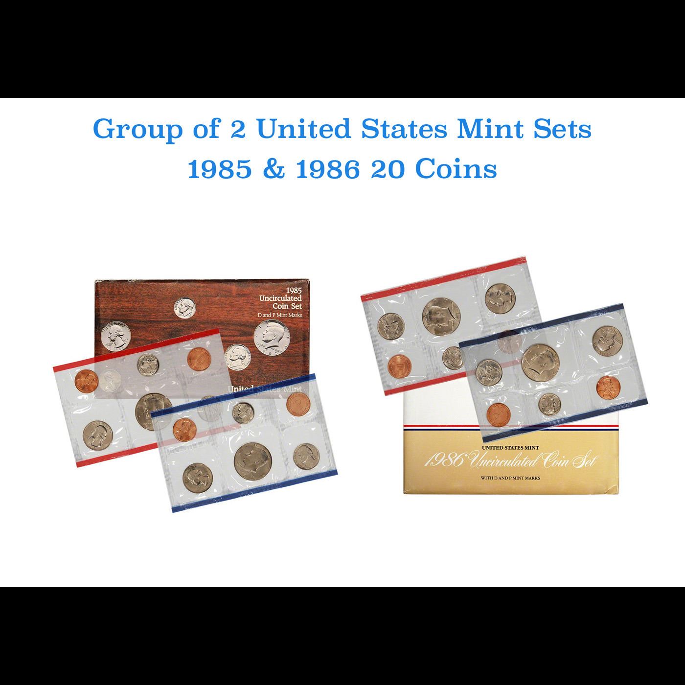 Group of 2 United States Mint Set in Original Government Packaging! From 1985-1986 with 20 Coins Ins