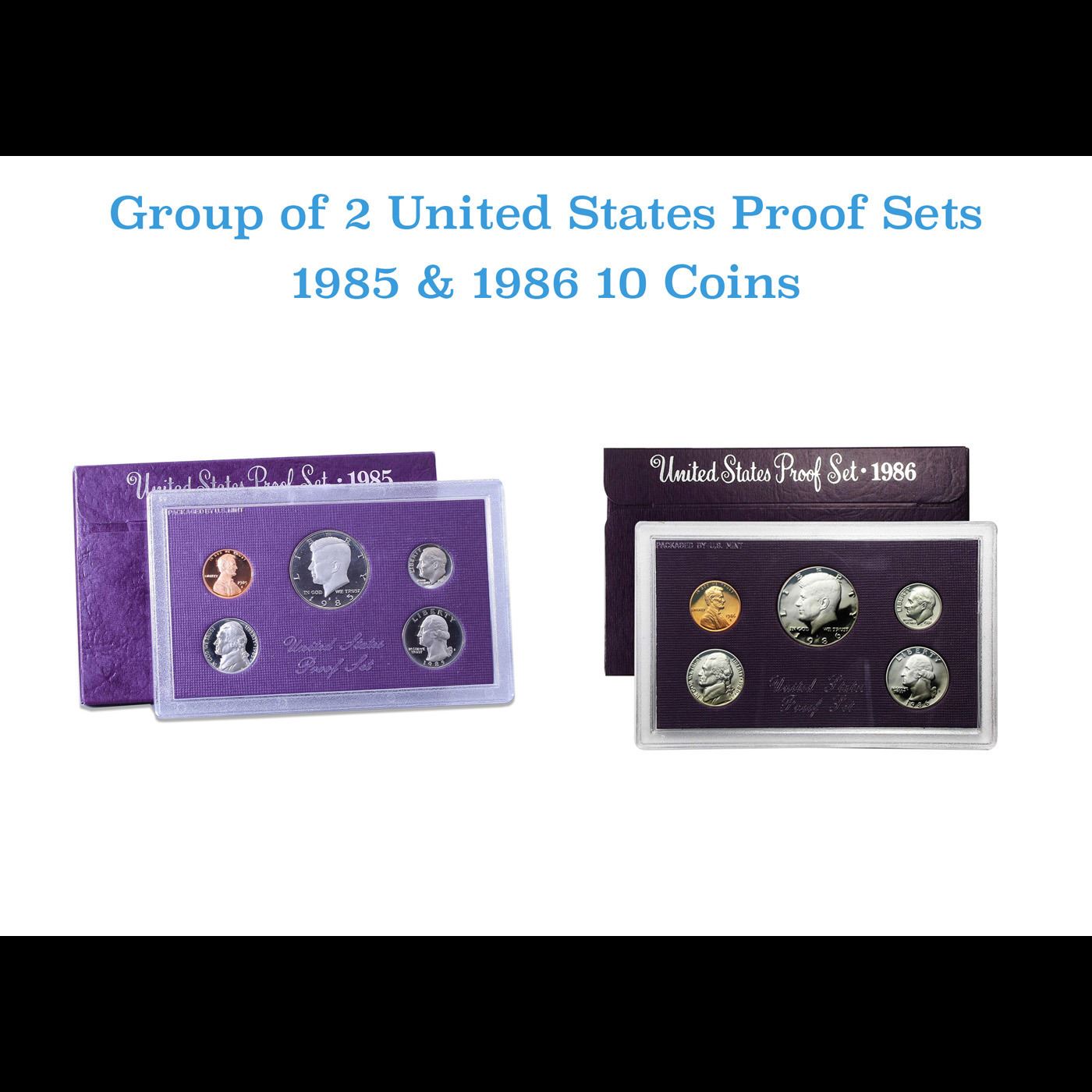 Group of 2 United States Mint Set in Original Government Packaging! From 1985-1986 with 20 Coins Ins