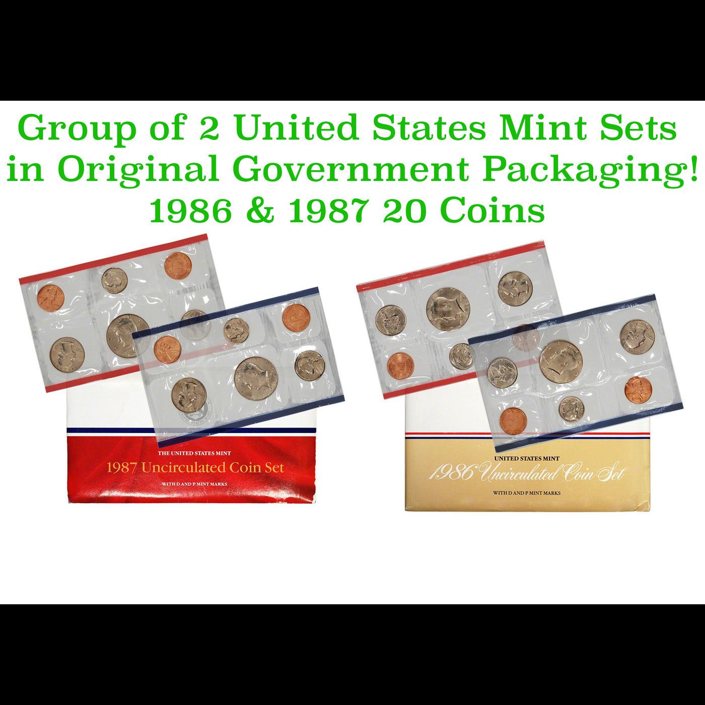 Group of 2 United States Mint Set in Original Government Packaging! From 1986-1987 with 20 Coins Ins