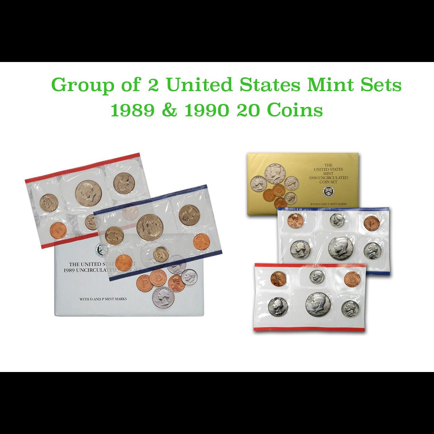 Group of 2 United States Mint Set in Original Government Packaging! From 1989-1990 with 20 Coins Ins