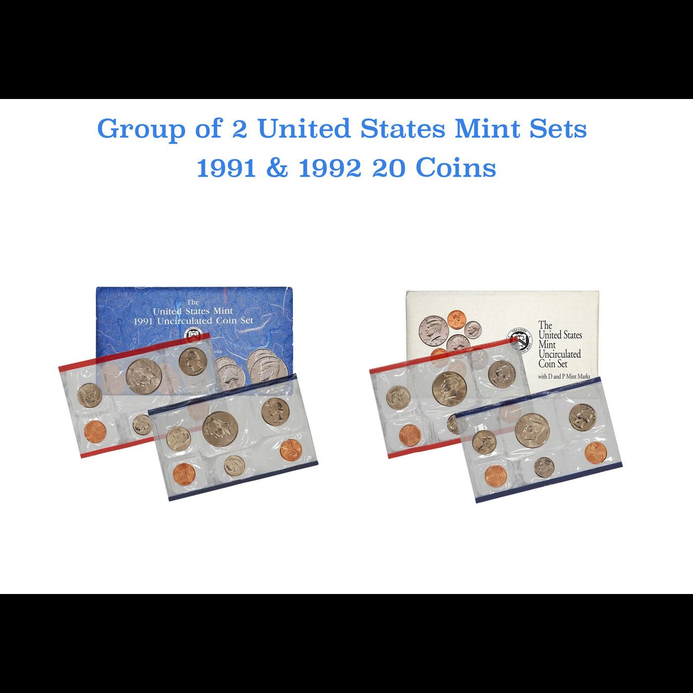 Group of 2 United States Mint Set in Original Government Packaging! From 1991-1992 with 20 Coins Ins