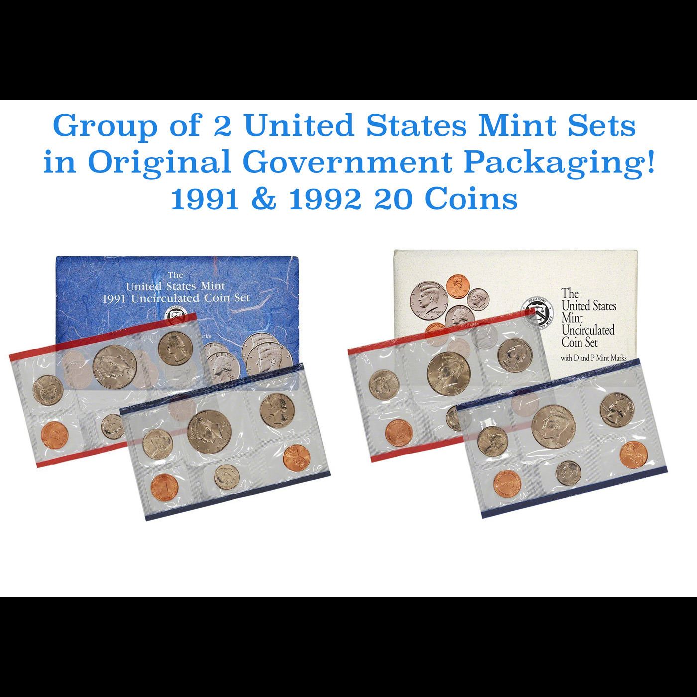 Group of 2 United States Mint Set in Original Government Packaging! From 1991-1992 with 24 Coins. Group of 2 United States Mint Set in Original Government Packaging! From 1991-1992 with 24 Coins Inside!