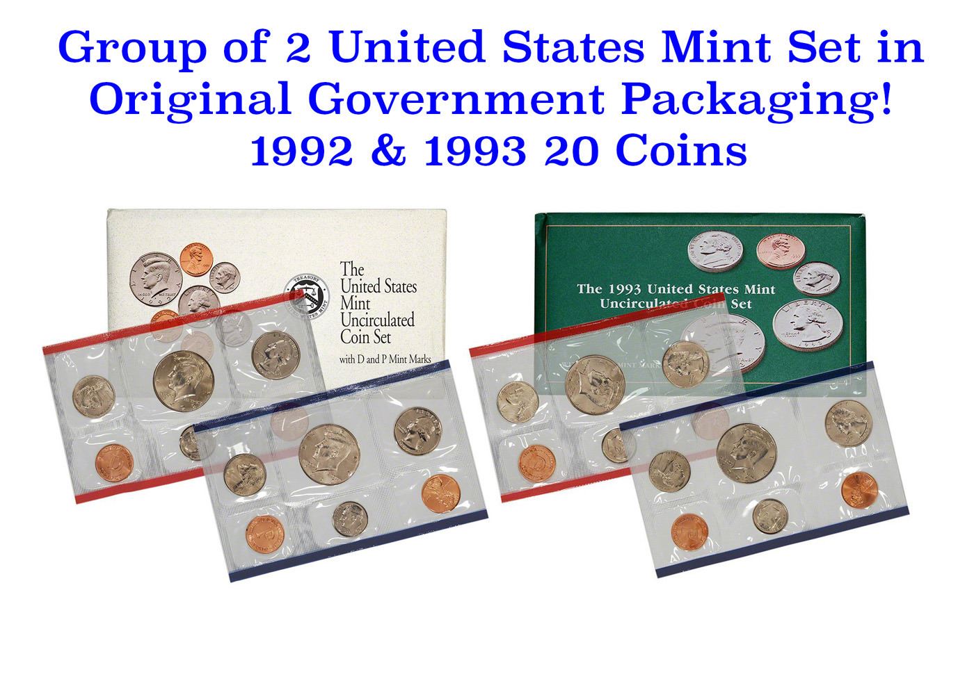 Group of 2 United States Mint Set in Original Government Packaging! From 1992-1993 with 20 Coins Ins