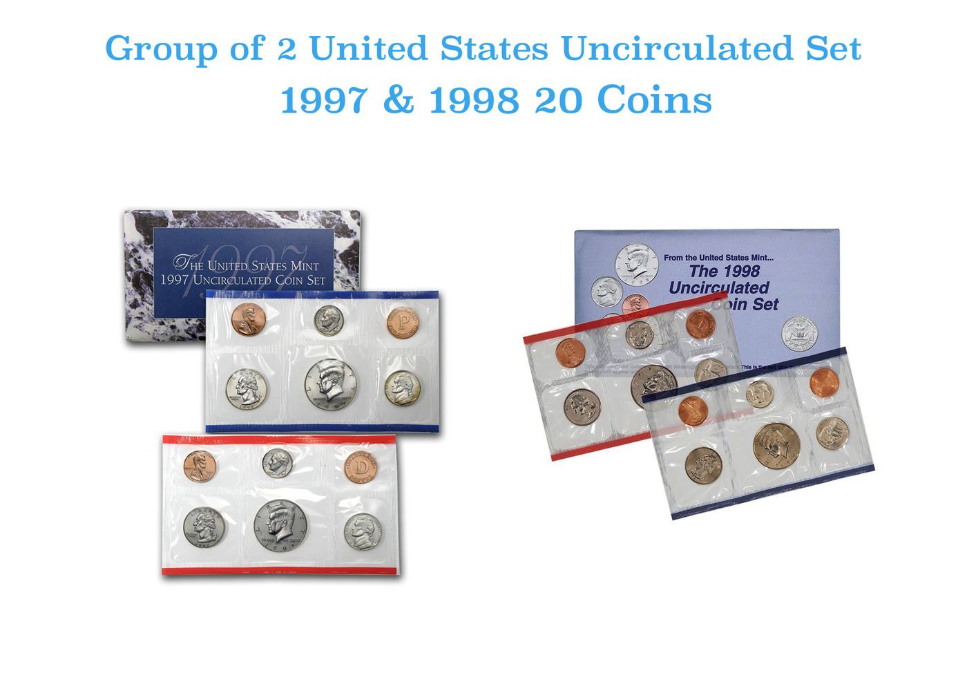 Group of 2 United States Mint Set in Original Government Packaging! From 1997-1998 with 20 Coins Ins
