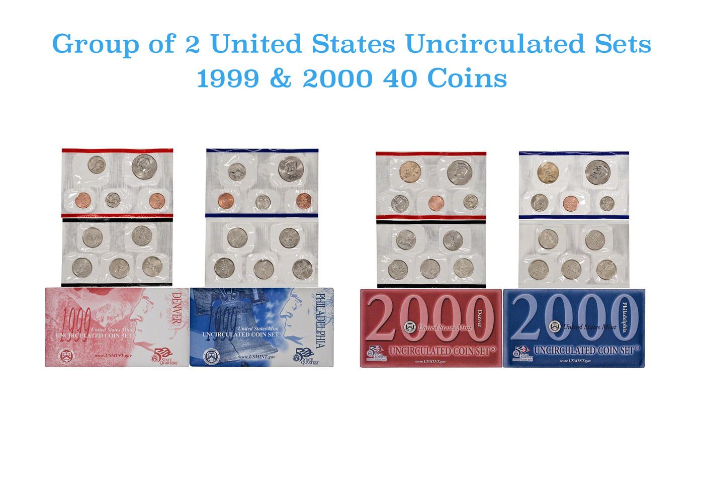 Group of 2 United States Mint Set in Original Government Packaging! From 1999-2000 with40 Coins Ins