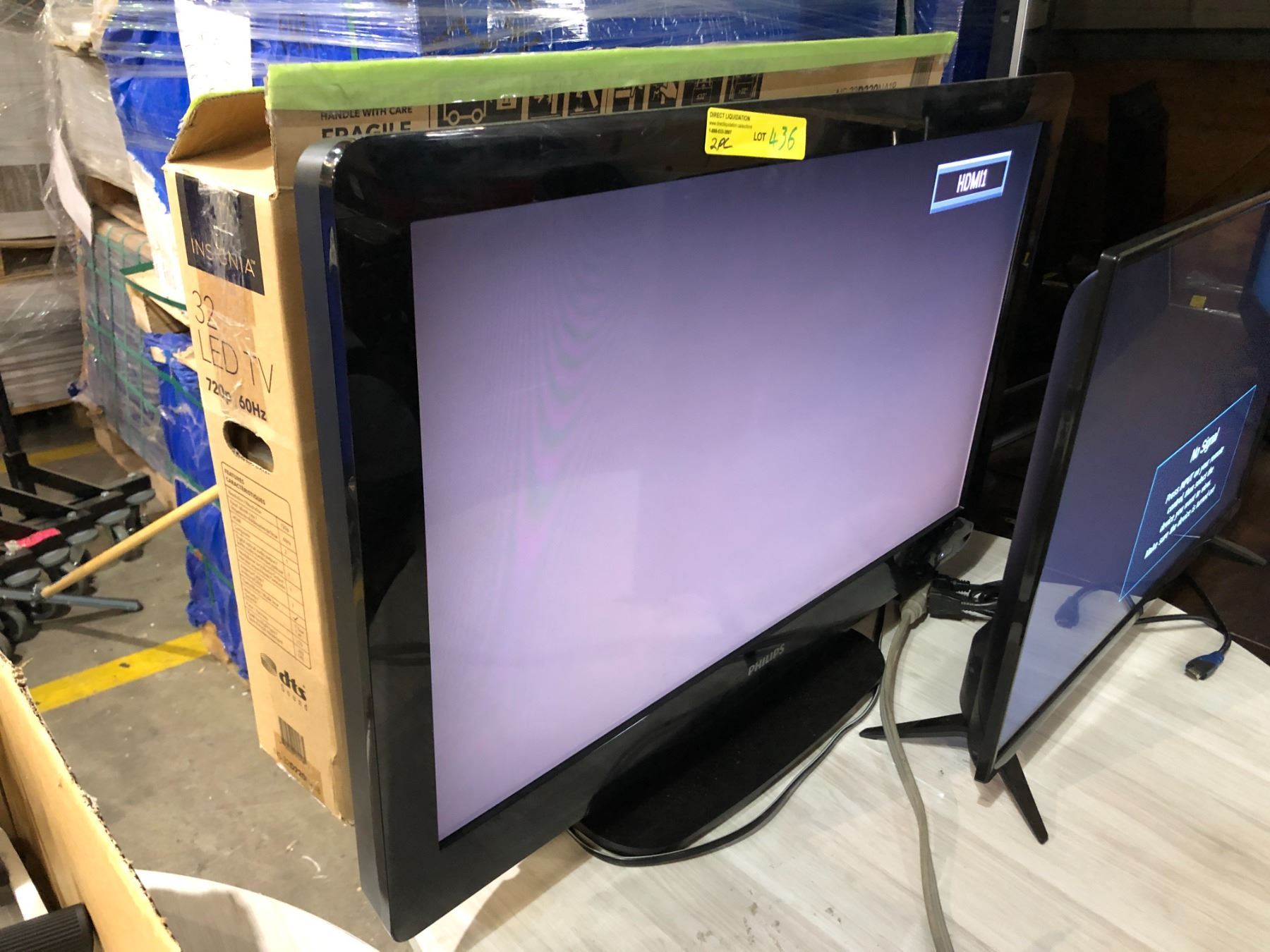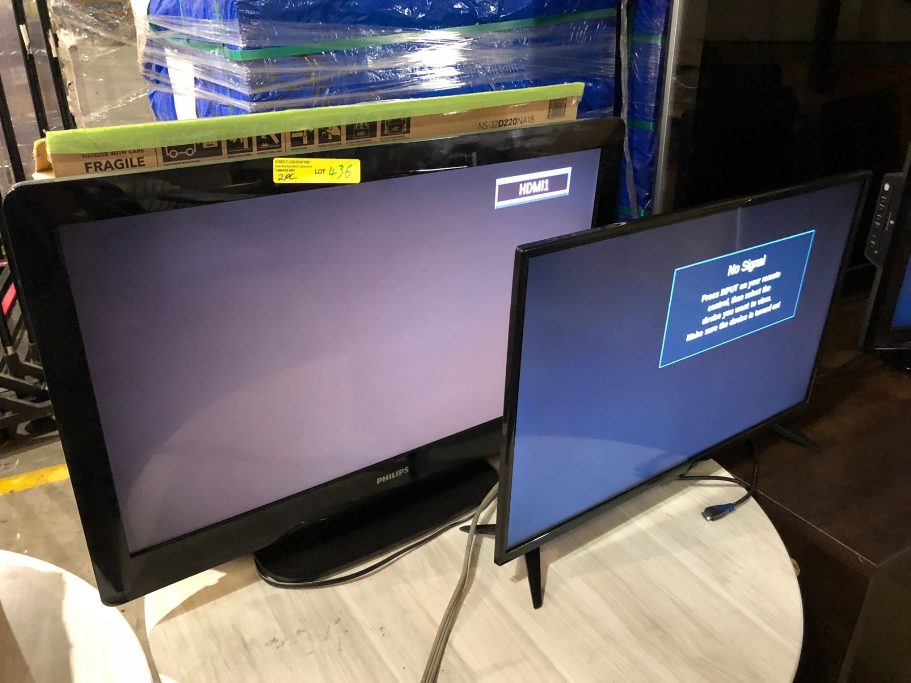 Group of 2 assorted TVs - Philips (32 in) & Insignia (32 in) - Tested working, one missing remote