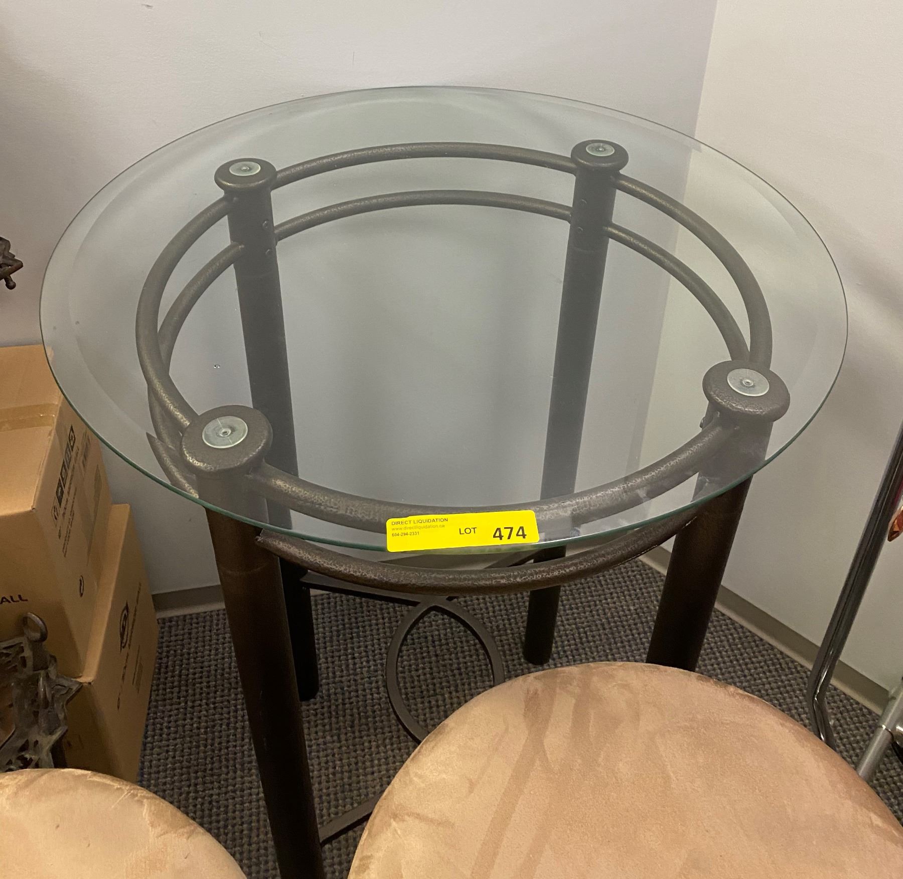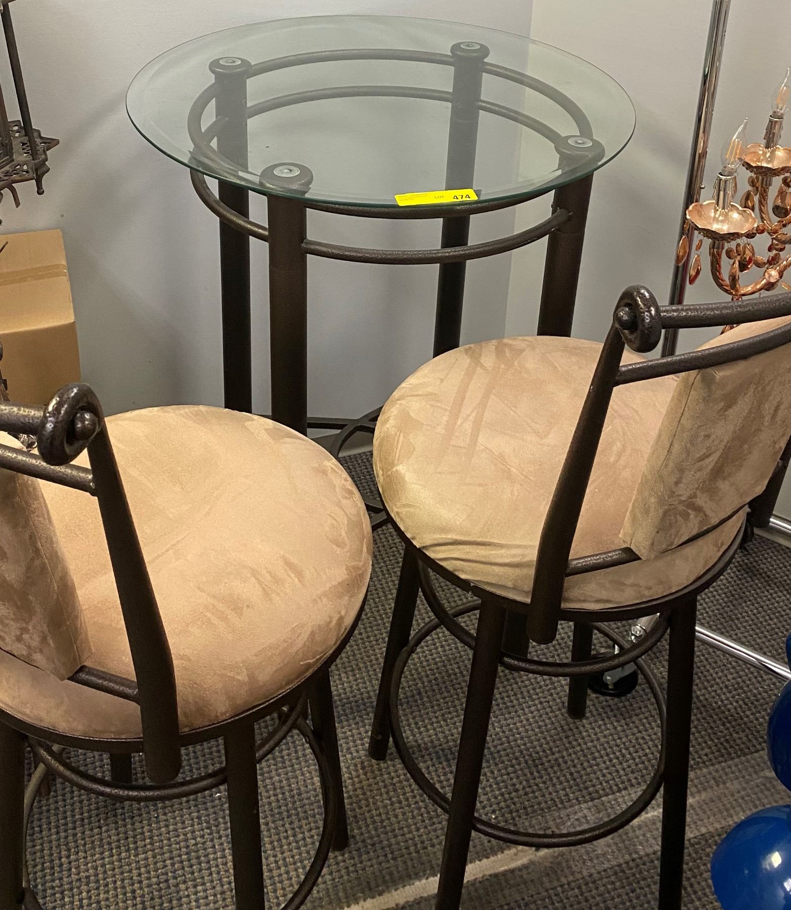 Group of 2 revolving bar chairs & round glass table - table (approx. 30in diameter & 41in H)